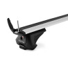 Suport universal aerodinamic ENVIO pentru vehicule cu patine integrate și ridicate (hagus). Bare de aluminiu cu o lungime de 120 cm și o capacitate portantă peste standard de 90 kg, finisaj argintiu. Sistem complet blocabil, siguranță certificată.