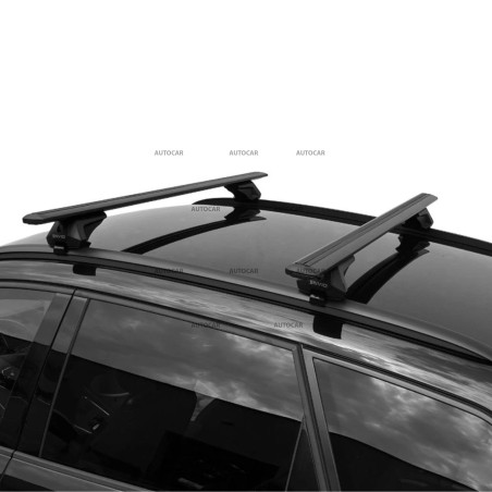 Suport universal aerodinamic ENVIO pentru vehicule cu patine integrate și ridicate (hagus). Bare de aluminiu cu o lungime de 120 cm și o capacitate portantă peste standard de 90 kg, de culoare neagră. Sistem complet blocabil, siguranță certificată.
