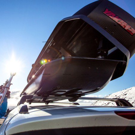 Acest sistem elegant dispune de patru YAKIMA SmartFoot-uri ușor de instalat și două YAKIMA FlushBar-uri. Barele se termină direct în picioare, creând un design compact, fără suprapunere.