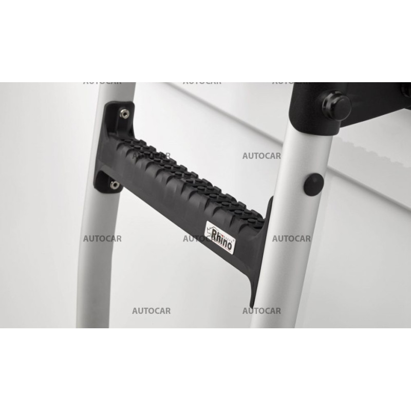 Scara din aluminiu Rhino cu 8 trepte combină rezistența și stilul pentru a oferi unul dintre cele mai plăcute produse de acces pe acoperiș din punct de vedere estetic disponibile pentru vehiculele comerciale. Folosind mânere foarte robuste din aluminiu și trepte din nailon din sticlă, Scara din aluminiu oferă o soluție extrem de ușoară. Fiecare model este cu peste 50% mai ușor decât vechile scări din oțel Rhino și a fost testat temeinic pentru o sarcină de lucru sigură de 120 kg per scară. Nu este potrivit pentru autoutilitare cu geam pe ușa din spate.