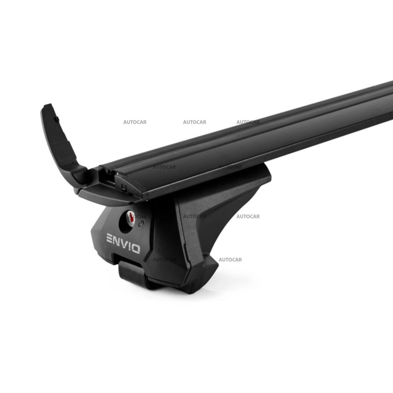 Suport universal aerodinamic ENVIO pentru vehicule cu patine integrate și ridicate (hagus). Bare de aluminiu cu o lungime de 120 cm și o capacitate portantă peste standard de 90 kg, de culoare neagră. Sistem complet blocabil, siguranță certificată.