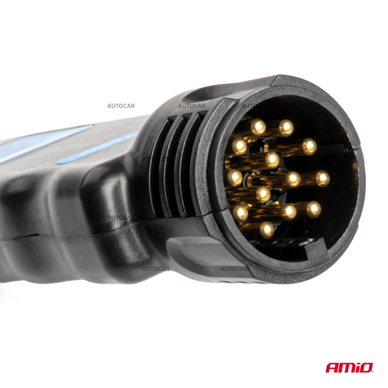 Control rapid și ușor al sistemului de iluminare de pe vehicul și remorcă pentru mufa cu 13 pini. Testerul este pur și simplu conectat la priză sau ștecher în curs de testare, butonul de testare este apăsat și se face o diagnoză clară prin intermediul afișajului LED, erorile sunt afișate direct.
