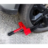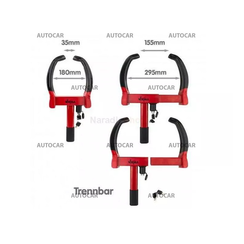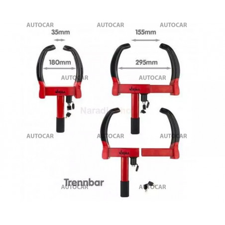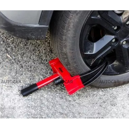 Blocatorul este conceput pentru a asigura o mașină, rulotă, remorcă, motocicletă împotriva furtului și manipulării neautorizate. Potrivit pentru showroom-uri auto, remorcări, birouri. Construcție din oțel, suprafața metalurgică a pulberilor, se adaptează la lățimea roților (testată pe roți cu lățimea de 180-290 mm), folosind un mecanism de blocare în 9 trepte cu zăvor (va împiedica remorcarea). Capetele cauciucate aisgură că - discurile nu vor fi deteriorate. 2 chei incluse.
