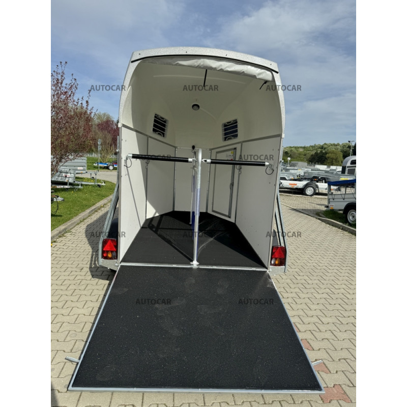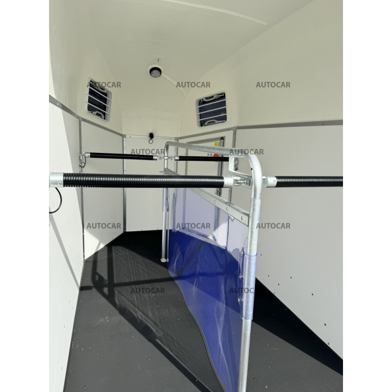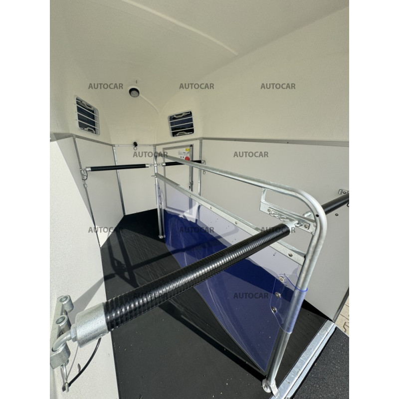 Cadru galvanizat, șasiu CFF-Plus cu amortizoare pe suspensie, podea din tego rezistent și impermeabil, pereți din tego impermeabil și vopsit în gri, acoperiș din poliester laminat cu finisaj metalic argintiu, geamuri ionizate, iluminare interioară, uși cu închidere, prelată spate autorulantă, podea acoperită cu cauciuc, rampa de încărcare acoperită cu cauciuc, despărțitor în partea din mijloc.