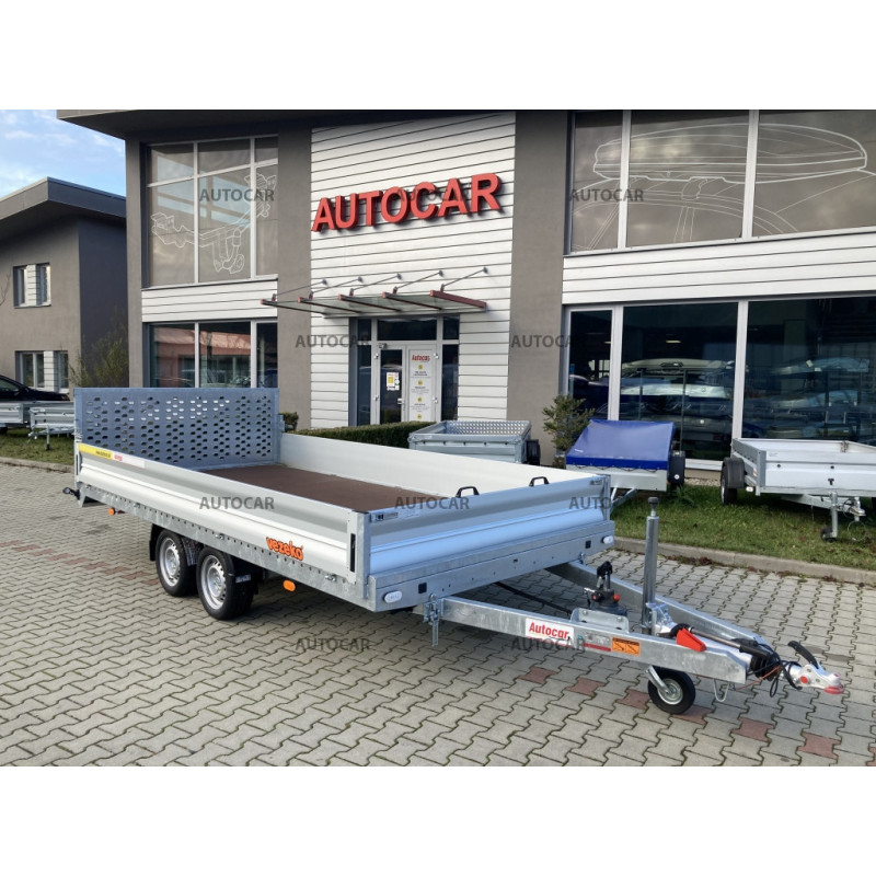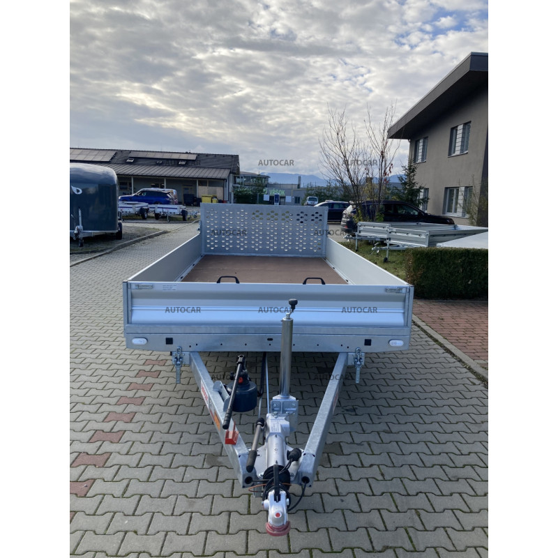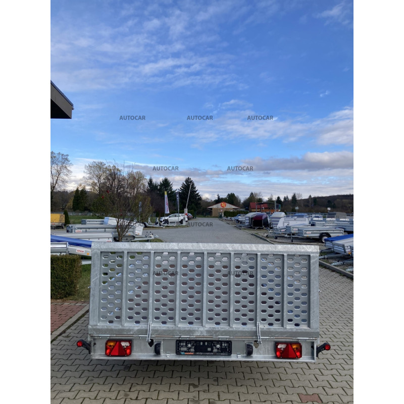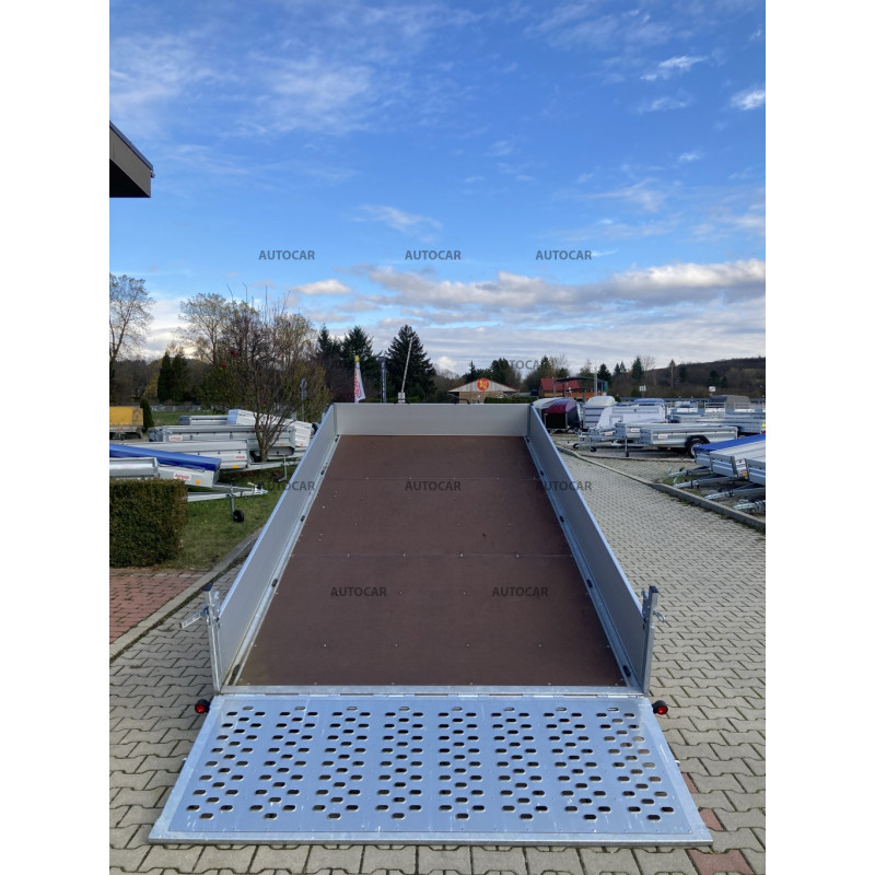 Transportor universal frânat cu o singură axă cu roți depozitate sub suprafața de încărcare. În echiparea standard, este echipat cu laterale din aluminiu, care pot fi demontate pentru a crea un platou. Opțional se poate comanda în varianta „plato cu balustradă”. Construcția constă dintr-o structură robustă din oțel zincat la cald, care garantează o durată lungă de viață. În dotarea de bază, dispune de: pliere hidraulică manuală cu o singură acțiune, roată de sprijin, pene de fundație. Remorca are o garanție de 2 ani și este proiectată pentru o viteză de 100 km/h.