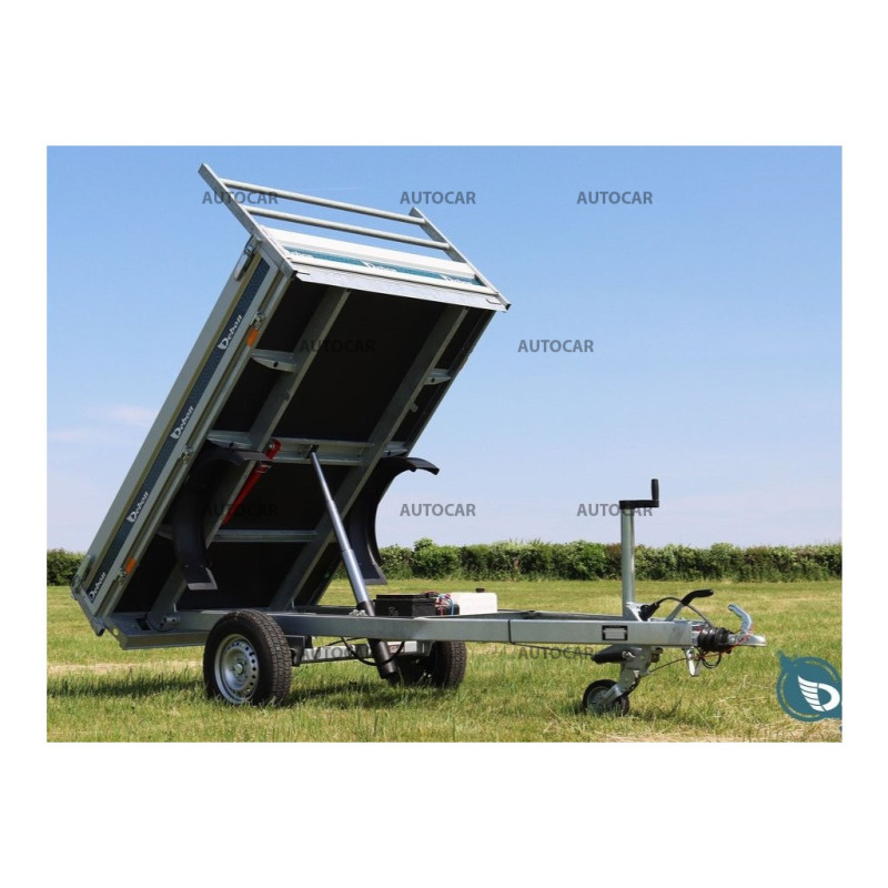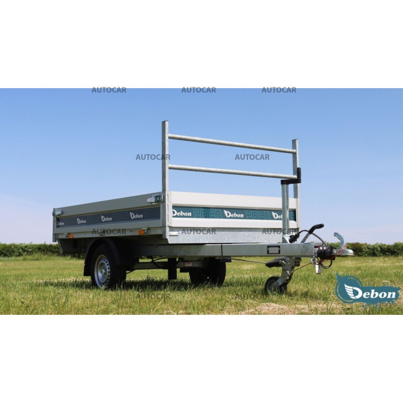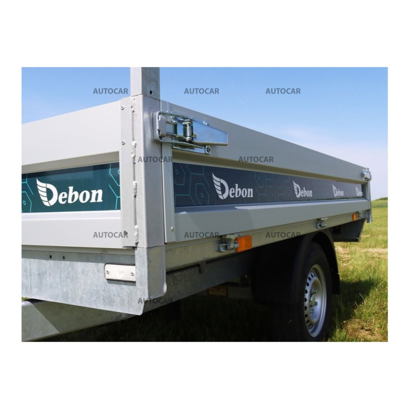 Remorcă hidraulic pe o singură parte și sistem de frânare cu roțile sub plaftorma de încărcare de la compania franceză Debon Cheval Liberté. În dotarea standard, este echipată cu laterale din aluminiu care pot fi demontate. Structura constă într-o construcție robustă de oțel zincat la cald sudat, care garantează o durată lungă de viață. In dotarea de baza dispune de: basculare hidraulică manuală, podea din placaj impermeabil, roata de sprijin, pene de blocare, remorca are garanție 2 ani și este proiectată pentru o viteza de 140 km/h.