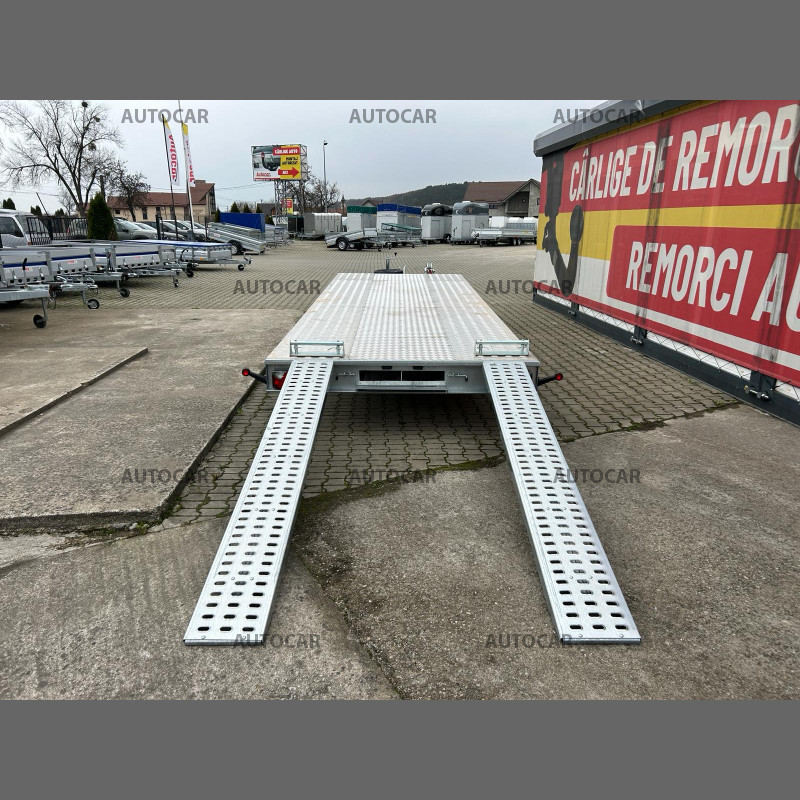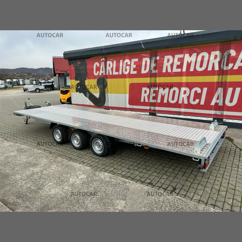 Această remorcă de marfă frânată cu trei axe este proiectată pentru transportul mașinilor și are un design unic, cu roți care sunt depozitate sub platforma. Structura sa este realizată din construcție robustă din oțel, care a fost sudată șiulterior, galvanizată la cald, ceea ce asigură o rezistență ridicată la coroziune și o durată de viață lungă. vi. Prin calitatea și durabilitatea sa, această remorcă oferă o garanție de 2 ani, ceea ce arată încrederea în fiabilitatea și calitatea sa. Construcția sa a fost concepută pentru a permite transportul mașinilor cu viteze de până la 100 km/h, oferind astfel un transport eficient și sigur.