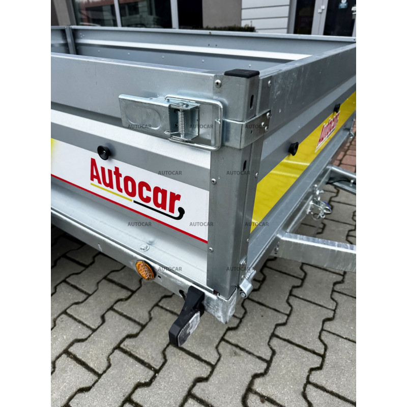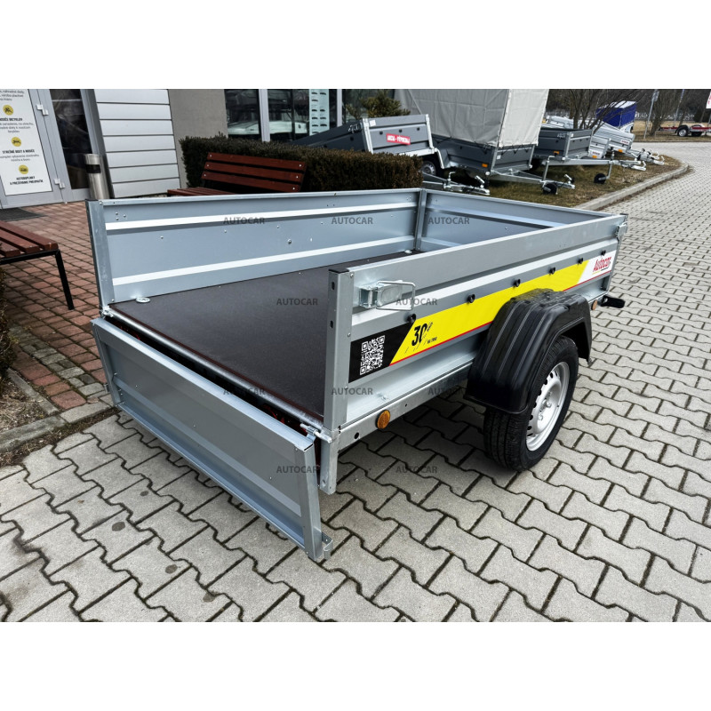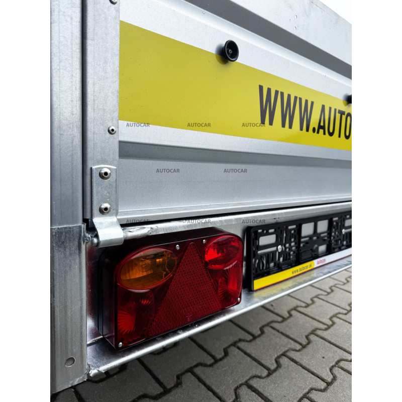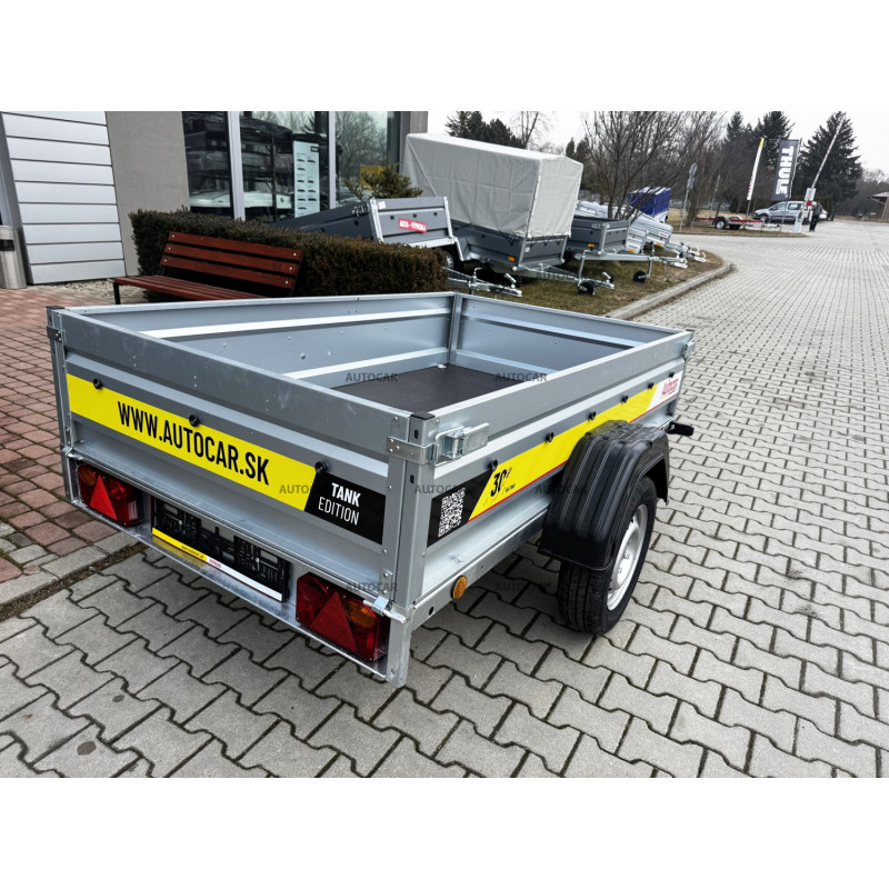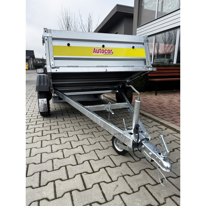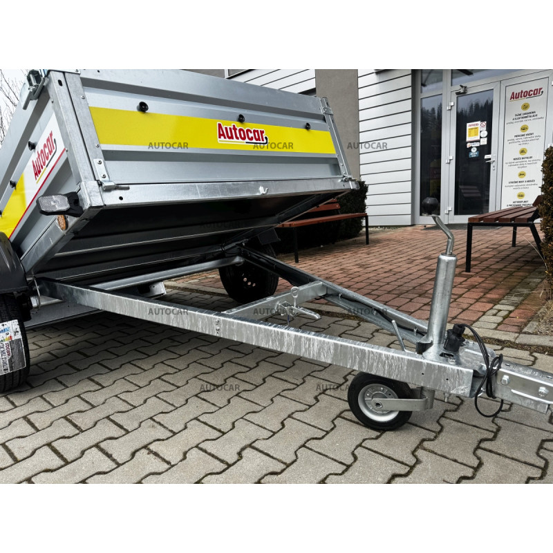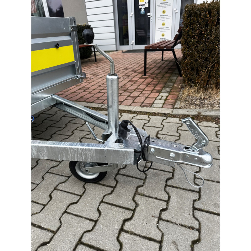 Remorca robustă cu o singură axă fără sistem de frânare, cu o singură axă, cu un cadru sudat de 6 cm înălțime și profilul șasiului este ranforsat cu 3 traverse în profil U de 3 ori facand remorca o soluție fiabilă pentru transportul oricărui tip de marfă. Suprafața sa largă de încărcare cu dimensiuni de 2060 x 1230 și o înălțime a oblonului lateral de 390 mm, cu grosimea oblonului de până la 1 mm, garantează rezistență și durabilitate. Această remorcă este dotată cu o podea din placaj rezistent la apă cu patru ocheți de ancorare. Designul basculabil al zonei de încărcare pe bara de remorcare de 7,5 cm înălțime și profilul C permite încărcarea și descărcarea ușoară a încărcăturii, făcând această remorcă potrivită pentru diverse nevoi de transport. Pe langa faptul ca este basculabilă, remorca are și oblonul din fata rabatabil si din spate detașabil, iar roata de sprijin cu suport este inclusă in pret. Obloanele din față și din spate sunt detașabile, iar întreaga remorcă este galvanizată la cald pentru protecție împotriva coroziunii. Instalația remorcii este standard cu 7 pini.