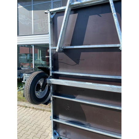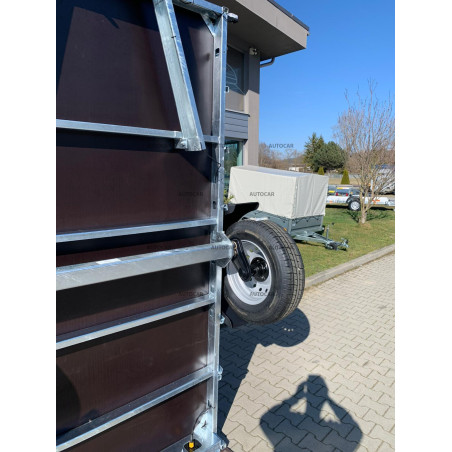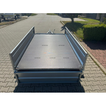 O remorcă pliabilă singură axă defrânată , cu un cadru sudat robust (8 cm) și ranforsare transversală asigură stabilitate și durabilitate. Zona de încărcare de 2630 × 1540 mm, cu pereți laterali de 390 mm (grosime de 1 mm), oferă mult spațiu. Podeaua din placaj impermeabil cu inele de fixare permite fixarea sigură a încărcăturii. Căruciorul are o structură pliabilă pe bara de tractare (9 cm) pentru încărcare ușoară, o deschidere frontală frontală și roată de sprijin incluse în preț. Un ajutor fiabil și practic pentru transportul diverselor mărfuri.