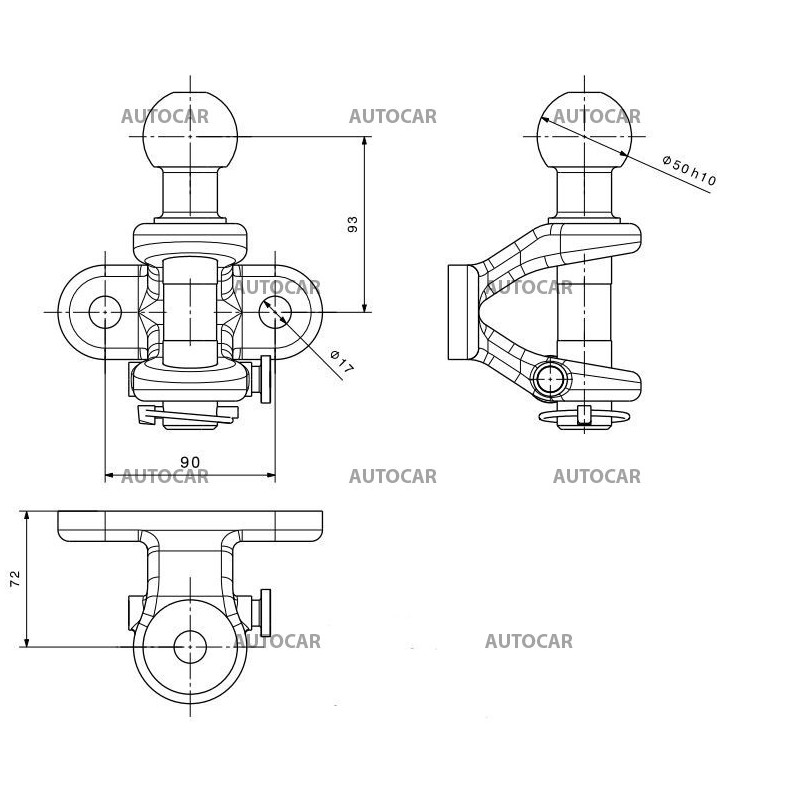 Bila poate fi folosită pentru dispozitive de tractare cu fixare a bilei prin două șuruburi în față, cu o distanță de 90mm între găuri.