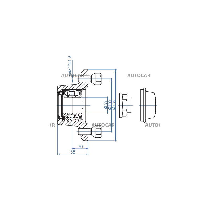Náboj kolesa 4x100 - s oskou a ložiskom