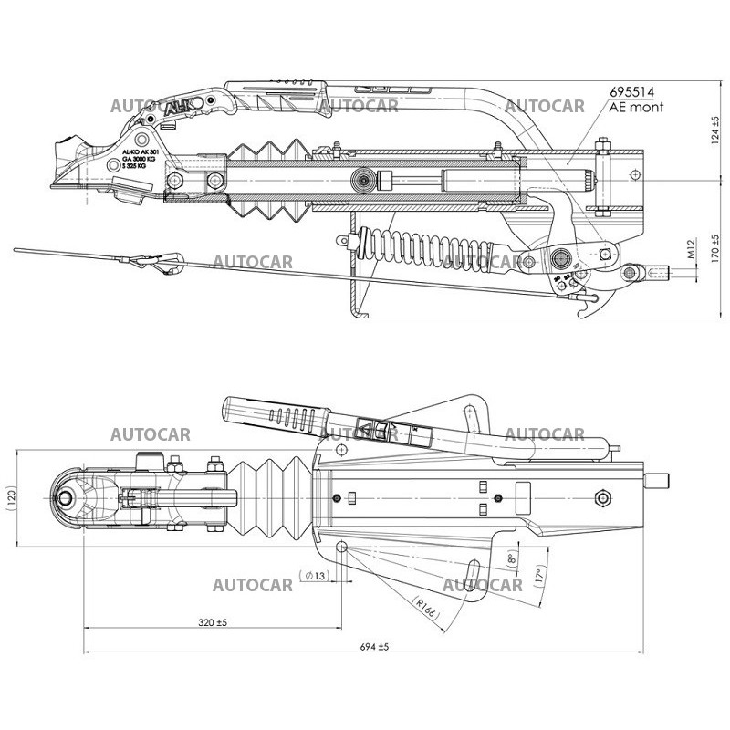 Conversie modernizată a frânei de supraîncărcare AL-KO 251G PLUS. Frâna este livrată cu cablu de siguranță și cuplaj de remorcare AL-KO AK 301 În comparație cu designul standard, această frână nu face distincție între montarea superioară și cea inferioară. Frâna poate fi montată în ambele moduri, adică cu bara de remorcare în partea inferioară (așa-numita „montare de sus”) și cu frâna în jos (așa-numita „montare de jos”). Ansamblul inferior poate fi utilizat cu o bară de tracțiune cu un profil de până la 100 mm înălțime.
