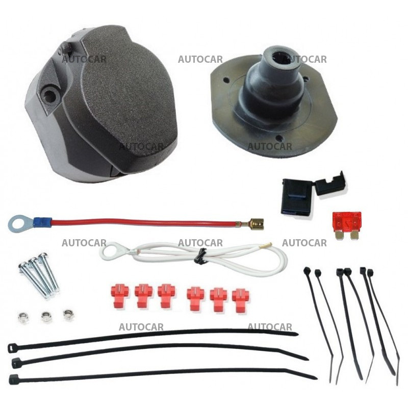 Cablaj universal impermeabil cu priză de 13/8 poli, potrivit pentru suporturi de biciclete sau remorci cu frână, echipate cu marșarier. Acest cablaj poate fi montat pe aproape toate mașinile.