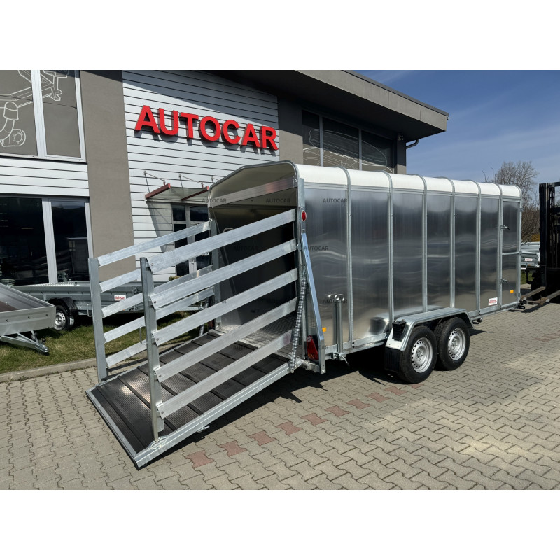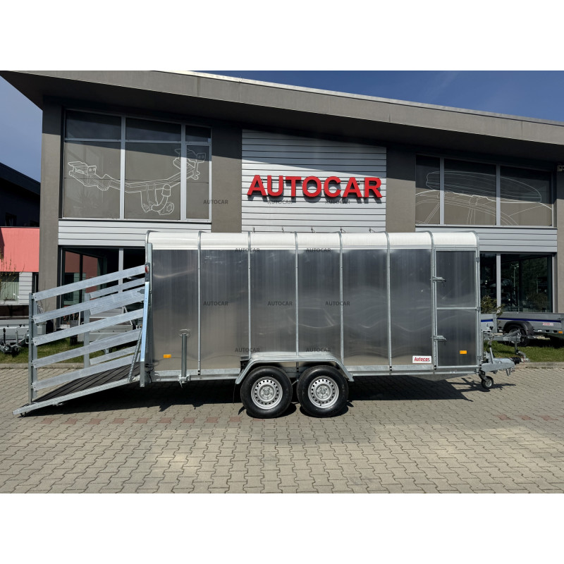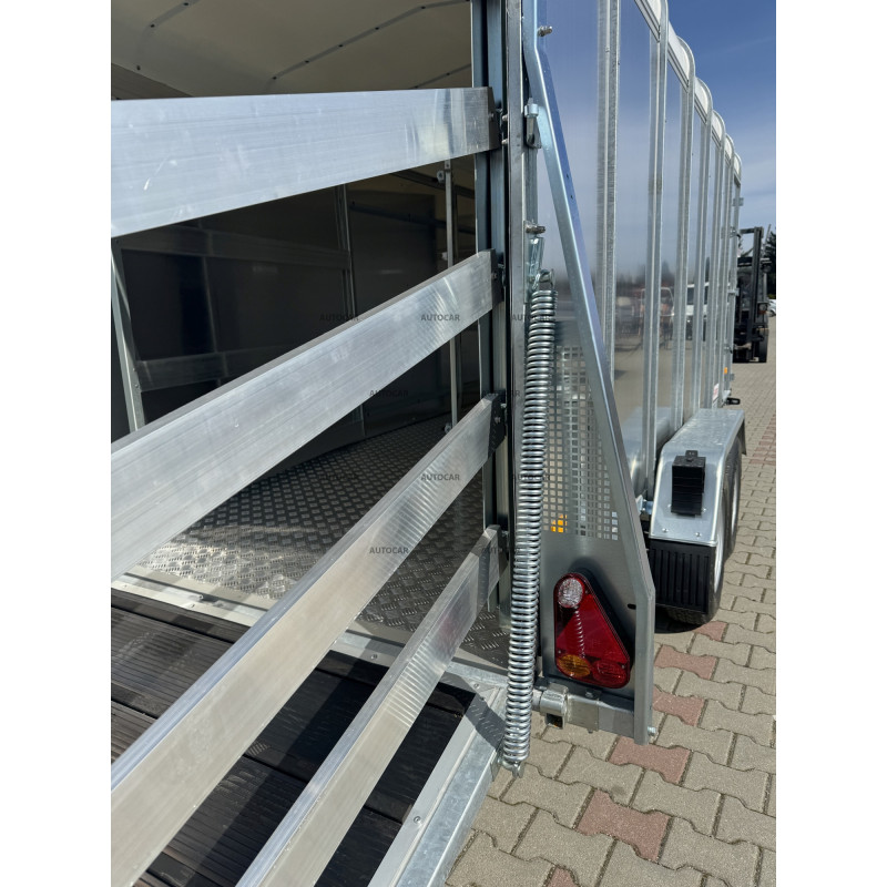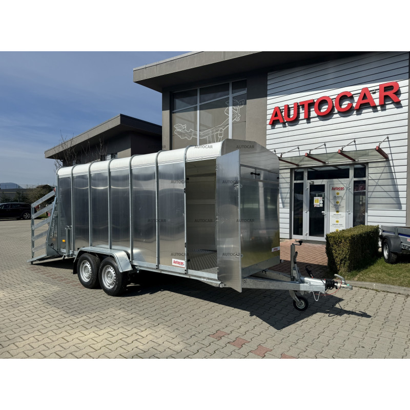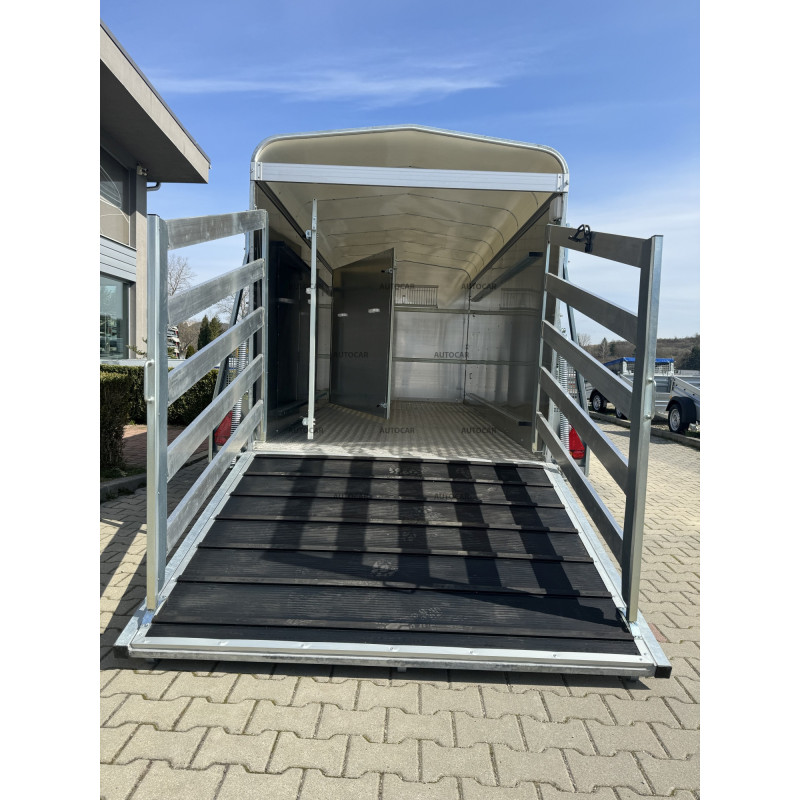 Remorcă potrivită pentru transportul animalelor, cu roțile plasate lateral cu suprafața de încărcare - tego rezistent la apă, acoperiș din aluminiu.