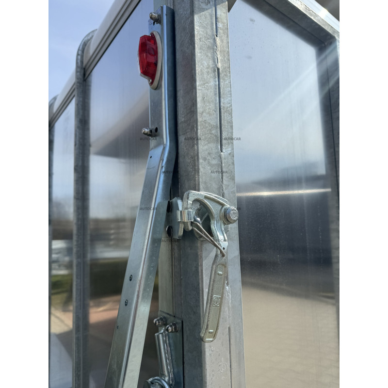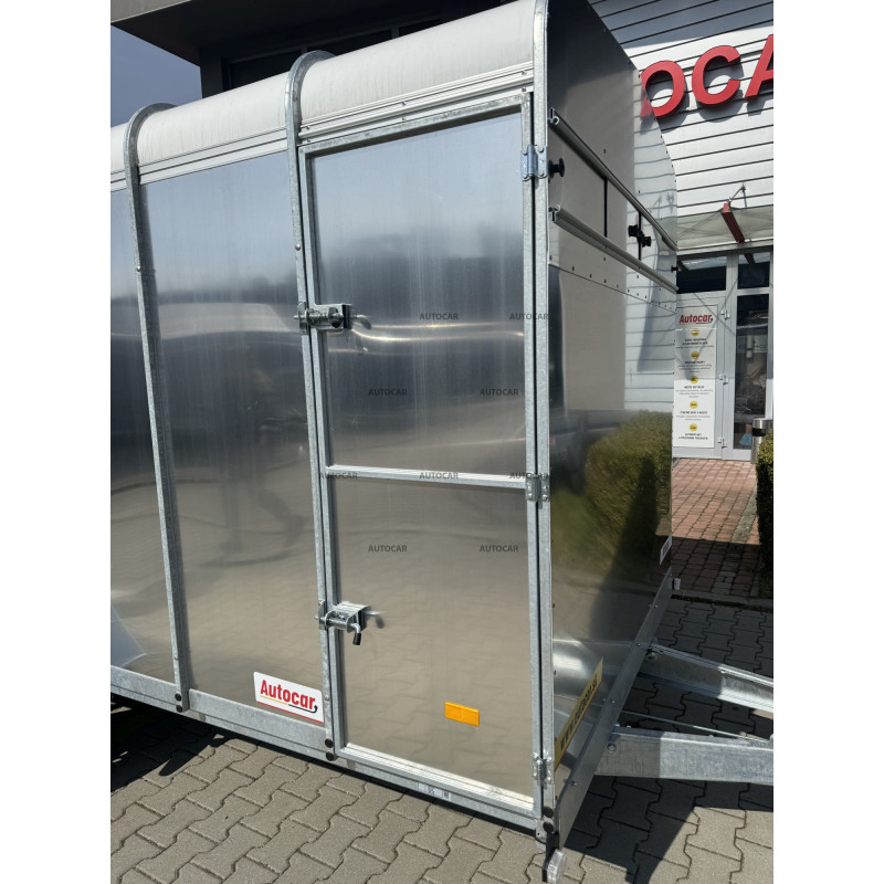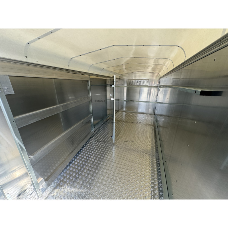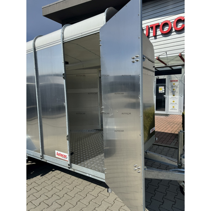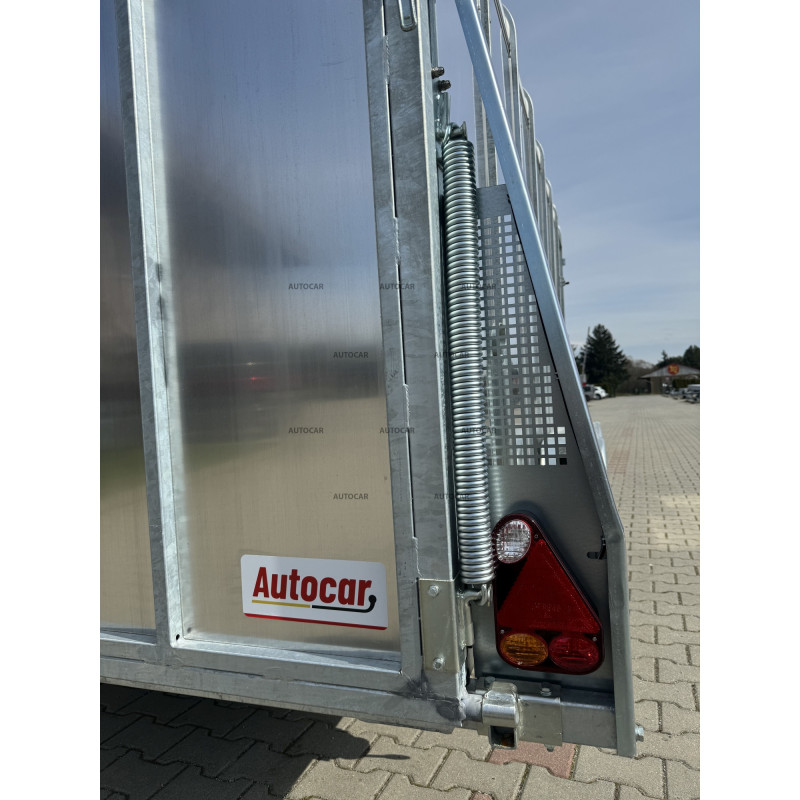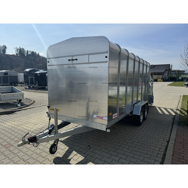 Remorcă potrivită pentru transportul animalelor, cu roțile plasate lateral cu suprafața de încărcare - tego rezistent la apă, acoperiș din aluminiu.
