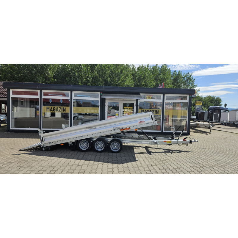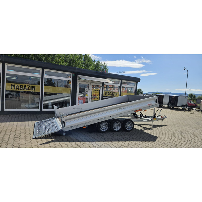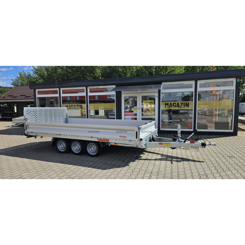 Transportor universal cu trei axe frânată cu roți depozitate sub zona de încărcare. Este echipat standard cu panouri laterale din aluminiu cu înălțimea de 350 mm, care pot fi demontate pentru a crea un „platou”. Pentru diverse nevoi, poate fi comandat alternativ în versiunea „platou cu balustradă”. Structura este formată dintr-o structură robustă din oțel sudat, galvanizat la cald , care garantează durabilitate și durată lungă de viață. Podeaua remorcii este fabricată din placaj antiderapant impermeabil . Echipamentul de bază include: pliere hidraulică manuală cu acțiune simplă, roată de sprijin, pene de încărcare. Este posibilă comandarea unei prelate.
