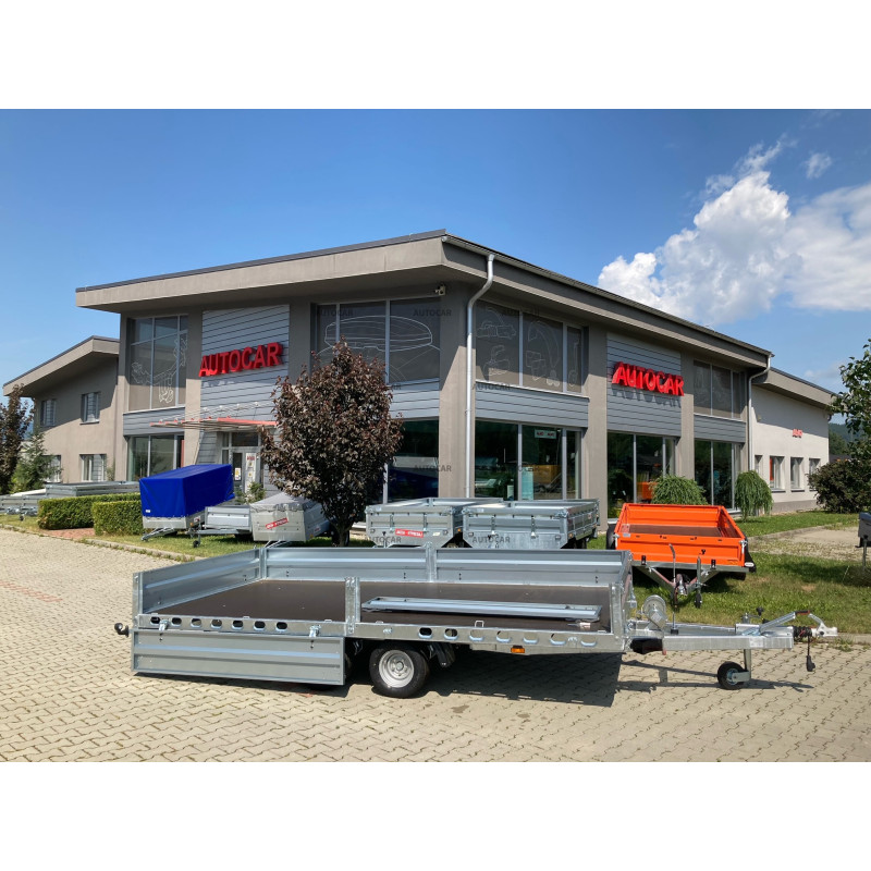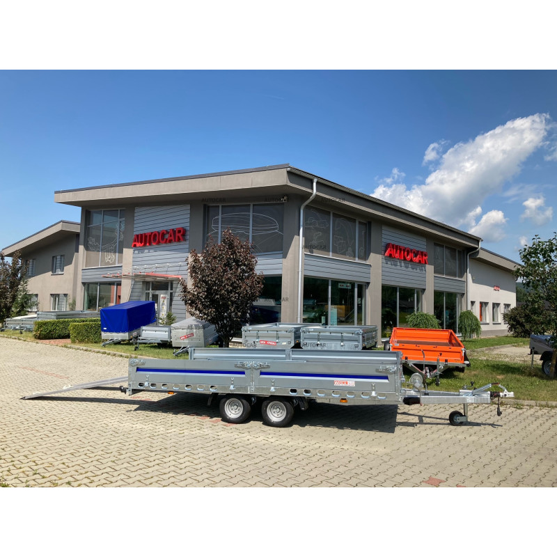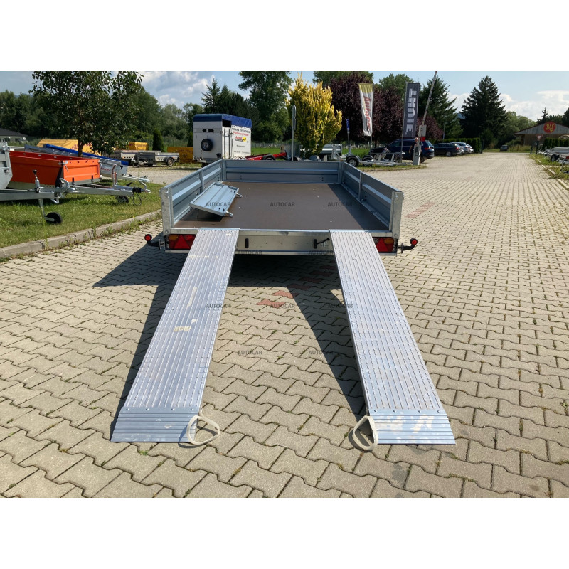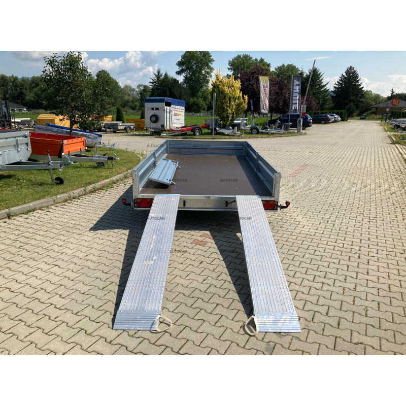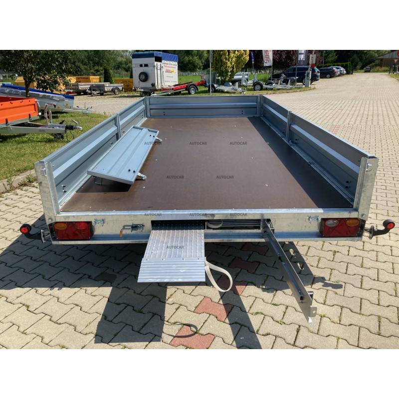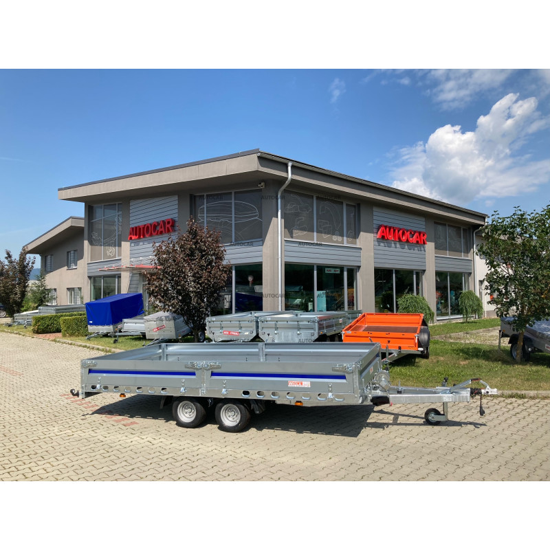 cu sistem de frânare cu două axe cu o greutate totală de 2700 kg este o soluție excepțională pentru transportul fiabil al mărfurilor și, de asemenea, transportul autoturismelor. Această remorcă este ideală, având în vedere versatilitatea și capacitatea de a se adapta la diferite nevoi de transport. Această remorcă este fabricată în vedere robusteții și performanței, făcându-o partenerul ideal pentru o varietate de nevoi de transport. Această remorcă are laterale galvanizate și placaj impermeabil.