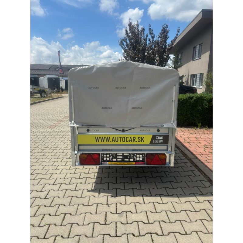 Prelată cu structură pentru o remorcă Tank 240 cu o înălțime de la podea până la cel mai înalt punct al prelatei de 120 cm. Structura este realizată din profile îndoite, iar spatele prelatei poate fi deschis.