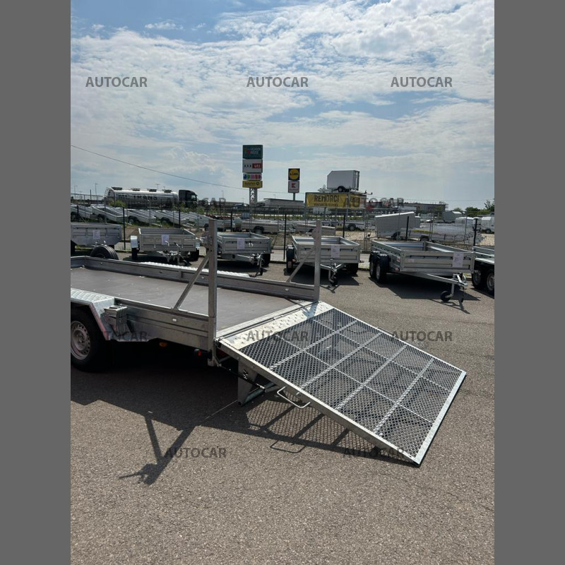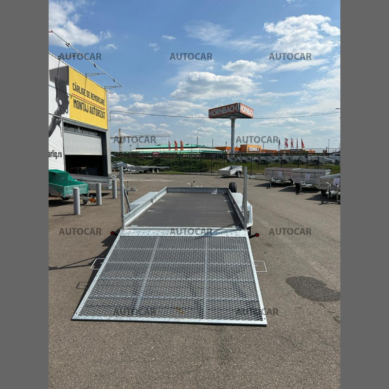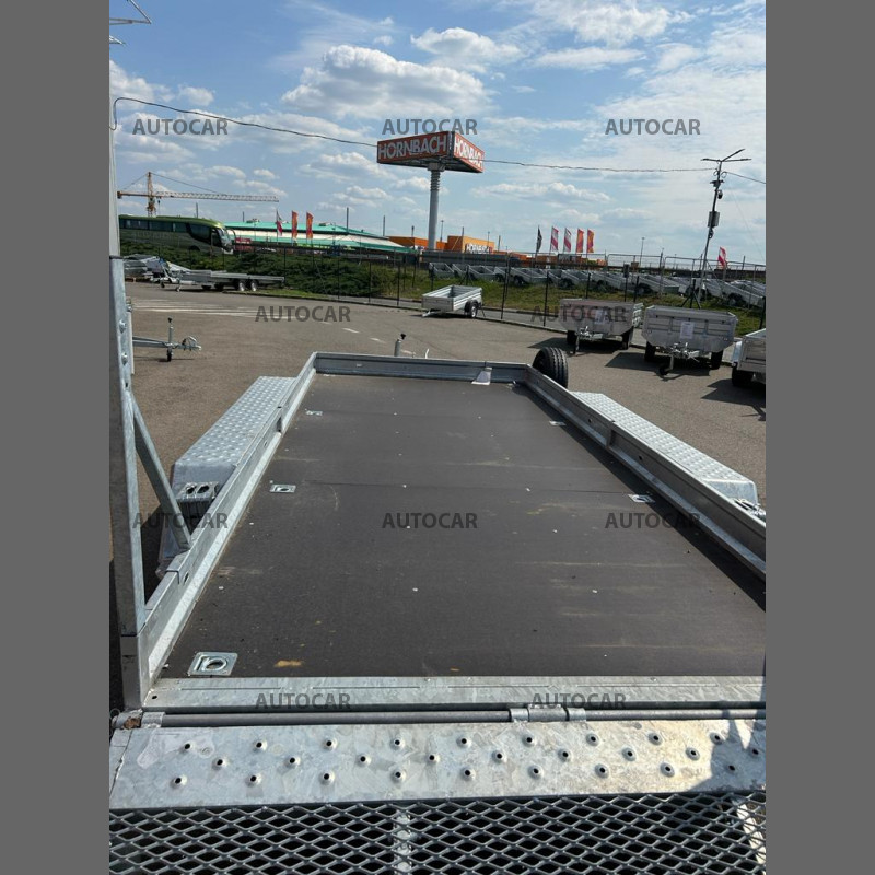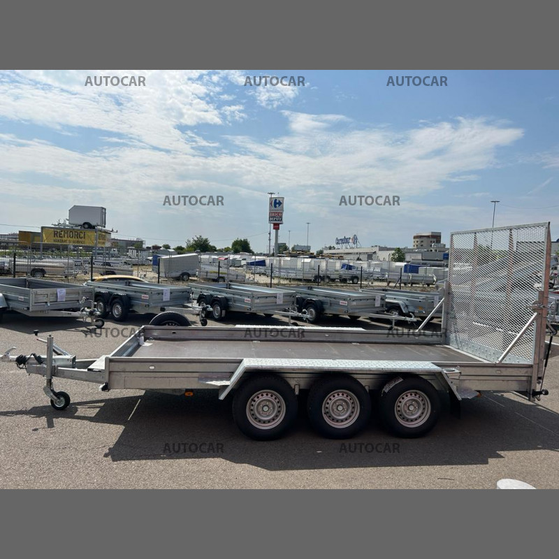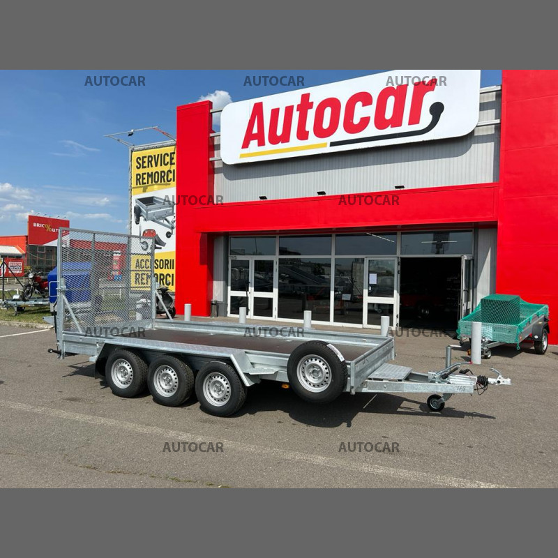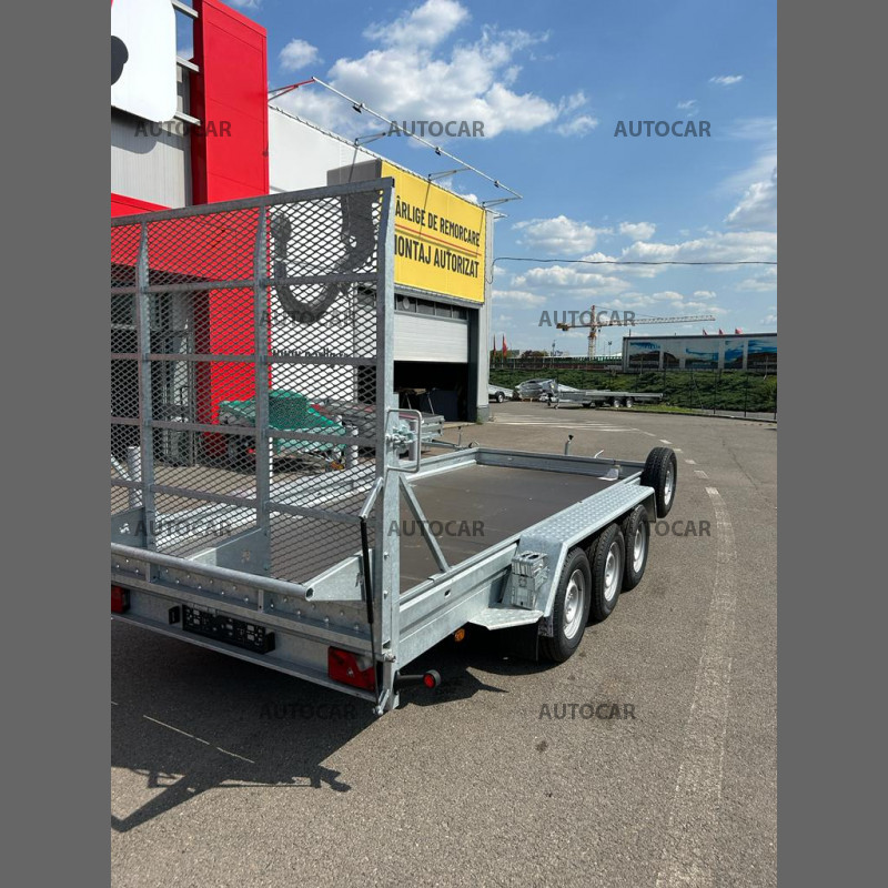 Remorcă cu trei axe frânate pentru transportul mașinilor de construcții cu roțile montate lângă zona de încărcare. Încărcarea simplă a mașinii este asigurată prin intermediul rampei de acces. Grinzi laterale de fier ale remorcii sunt sudate direct pe cadru, conferindu-le o rezistență ridicată. Construcția este formată dintr-o structură de oțel sudată galvanizată în țâș, garantând o durabilitate îndelungată. În echiparea standard, are: 8x puncte de ancorare pentru fixarea mașinii, podea din placaj rezistent la apă, roată de sprijin. Remorca are o garanție de 2 ani și este construită pentru o viteză de 100 km/h.
