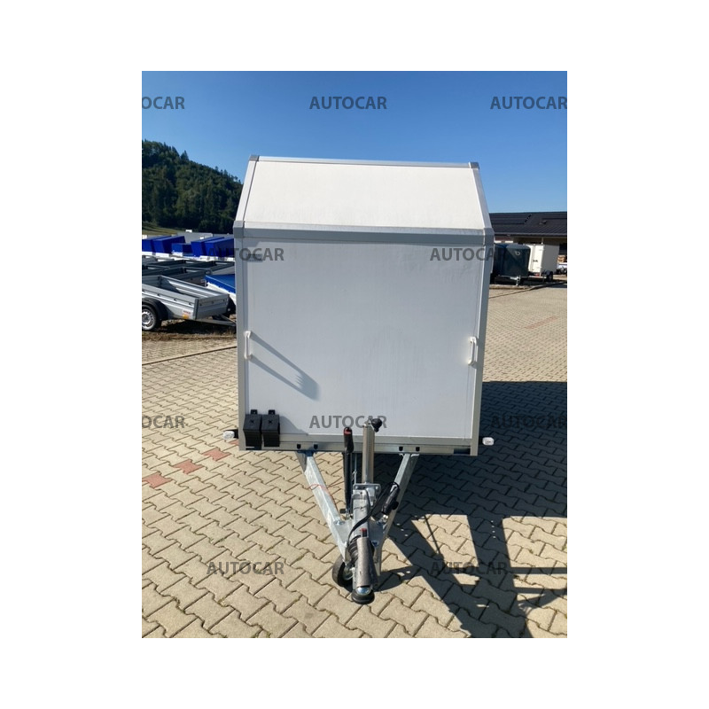 Remorca cu casetă cu o osie și frână până la 1300 kg este un mijloc de transport compact și practic, adesea utilizat pentru transportul diferitelor încărcături. Noua versiune cu pereți izolați (sandwich) și podea din placaj rezistent la apă oferă un spațiu închis și asigură protecția încărcăturii împotriva influențelor externe nefavorabile și condițiilor meteorologice. În versiunea standard, caseta este de culoare albă. Remorca este echipată cu uși cu două aripi. Echipamentul de bază include prinderi pe podea care servesc la fixarea încărcăturii cu curele sau cabluri pentru a preveni mișcarea acesteia în timpul transportului. În plus, aceste remorci au picioare de sprijin în spate care stabilizează vehiculul în timpul încărcării și descărcării încărcăturii. Alte componente sunt wedge-urile care sunt utilizate pentru a asigura roata remorcii, împiedicând mișcarea acesteia în timpul staționării.