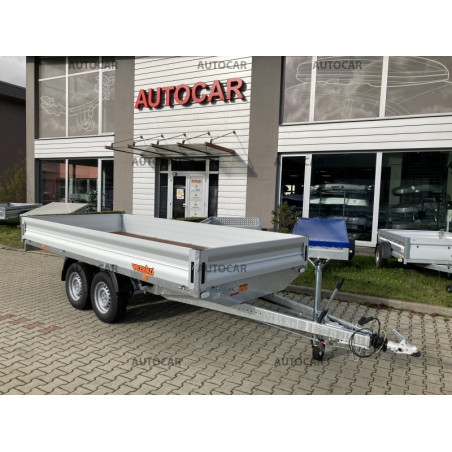 Remorcă cu sistem de frânare cu două axe, cu roți sub suprafața de încărcare. Podeaua este fabricată din placă de tego rezistentă la apă. Șasiul remorcii este asamblat din piese profilate galvanizate. Obloanele sunt realizate din profile de aluminiu de înaltă calitate și sunt detașabile, permițând transformarea remorcii într-o "platformă". Remorca include în preț 8 ocheți de ancorare, roată de sprijin și cale de blocare . Poate fi echipată cu o prelată până la 200 cm înălțime de la podea.