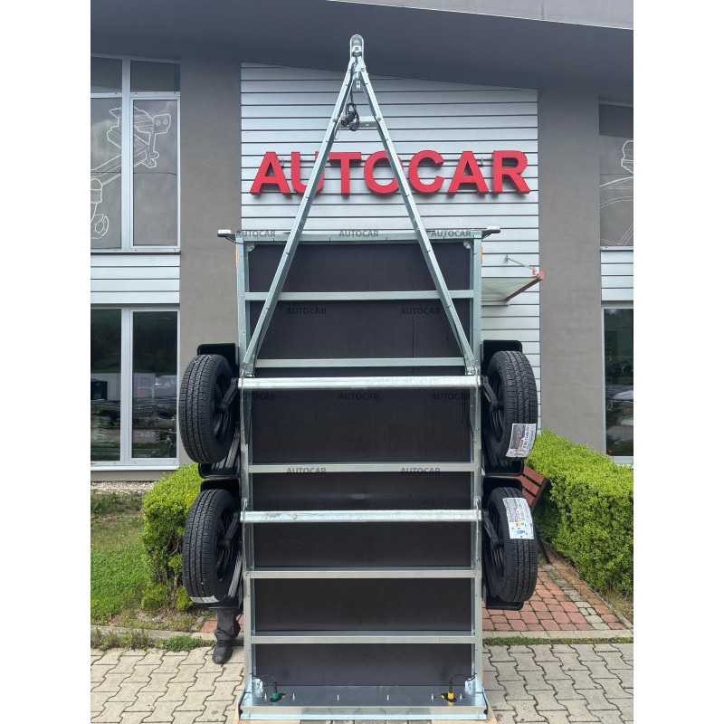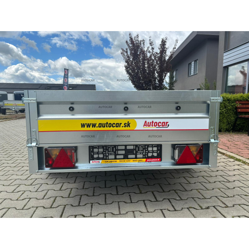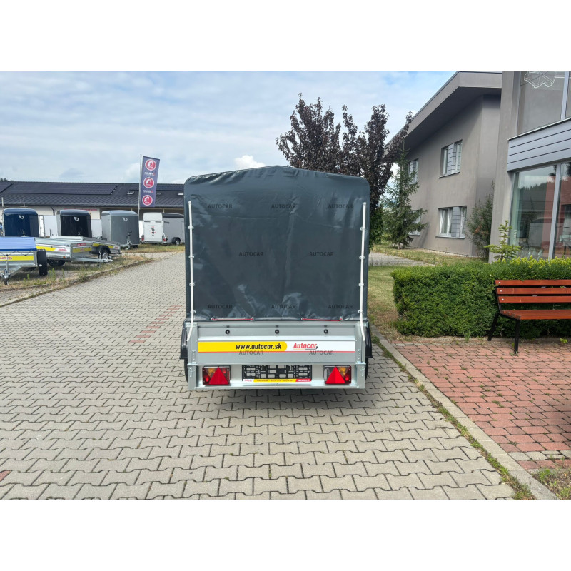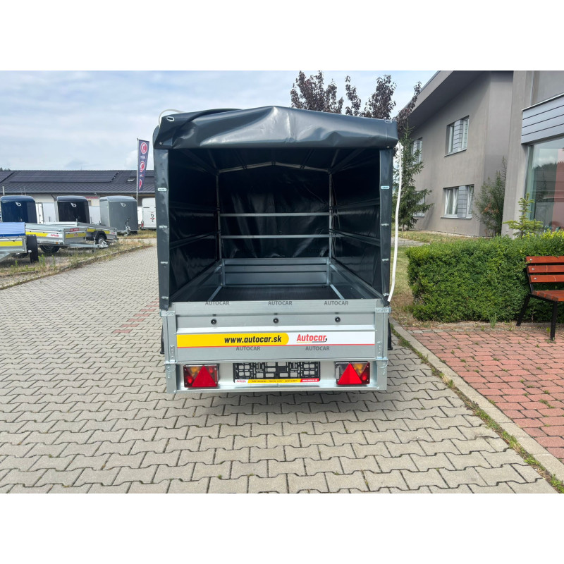 Remorcă cu două axe, defrânată , cu prelată de 120 cm înălțime de la podeaua remorcii și cadru complet Construcția cu o înălțime de 6 cm și cele cinci elemente de rigidizare asigură o rezistență și o stabilitate ridicate chiar și atunci când este complet încărcată. Patru inele de ancorare sunt amplasate în podea pentru a fixa în siguranță încărcătura. Căruciorul este echipat cu panouri laterale profilate rezistente, din tablă galvanizată, care garantează o durată lungă de viață și protecție împotriva coroziunii. Panou lateral posterior este deschis și detașabil , ceea ce facilitează încărcarea și descărcarea mărfurilor.