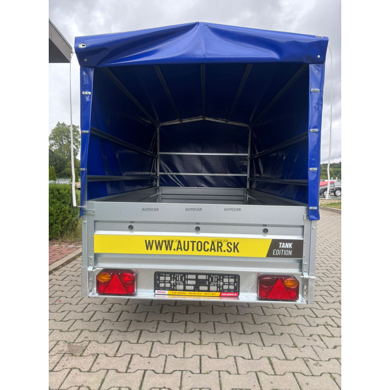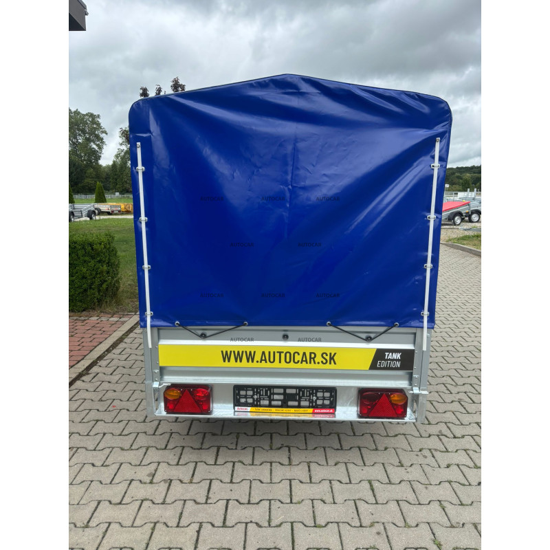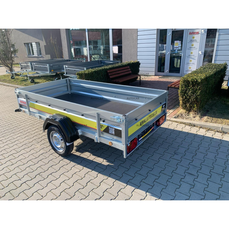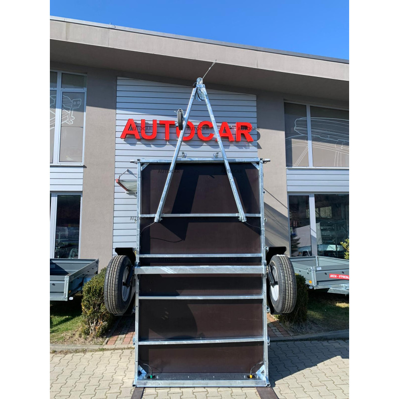remorcă pliabilă cu singură axă defrânată frâne, cu prelată înaltă de 140 cm de la podeaua remorcii și un cadru sudat robust (7 cm), cu 4 ranforsări transversale care asigură stabilitate și durabilitate. Suprafața de încărcare de 2630 × 1330 mm, cu pereți laterali de 390 mm (grosime de 1 mm), oferă mult spațiu. Podeaua din placaj impermeabil cu inele de fixare permite fixarea sigură a încărcăturii. Remorca are o structură pliabilă pe bara de tractare (8 cm) pentru încărcare ușoară, o deschidere frontală și roată de sprijin inclusă. Un ajutor fiabil și practic pentru transportul diverselor încărcături.