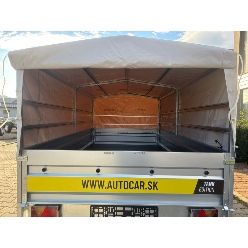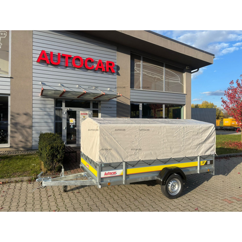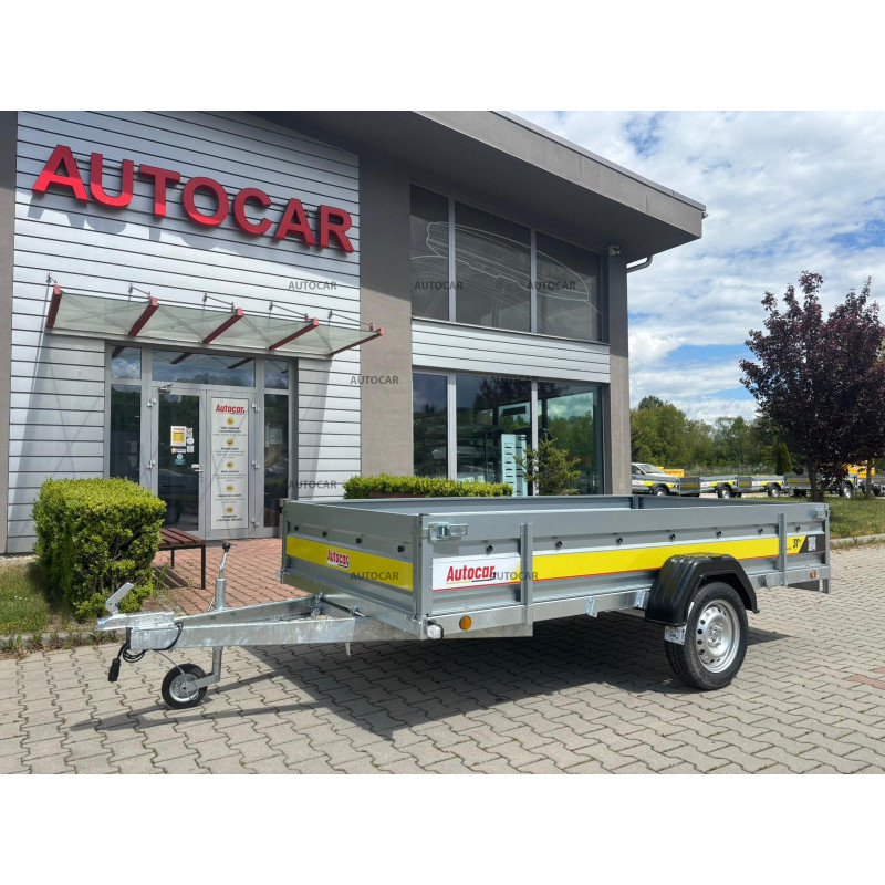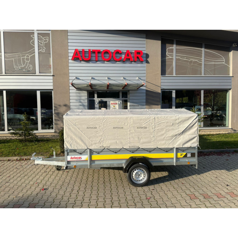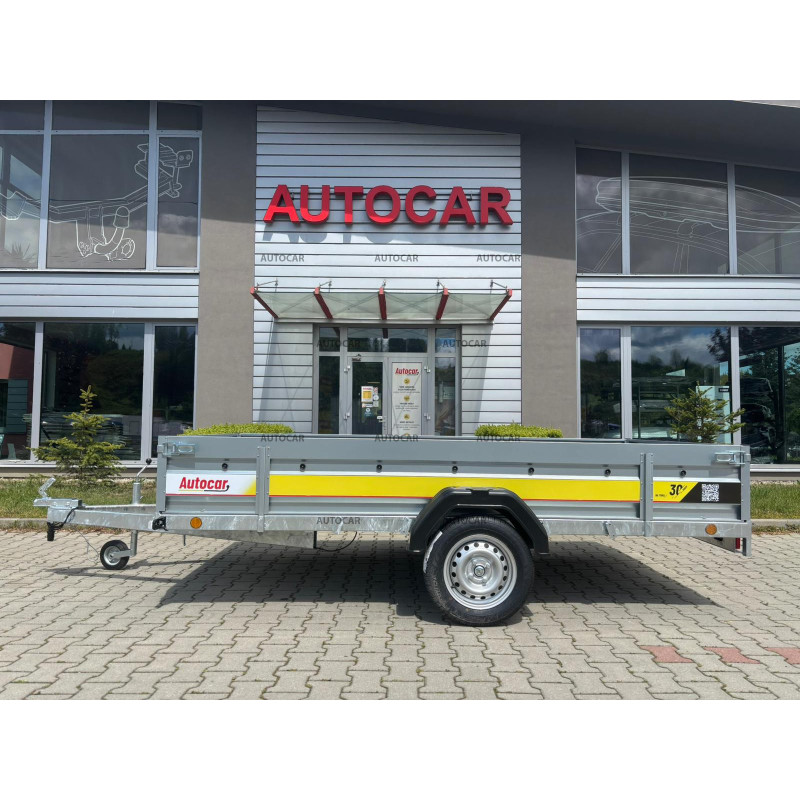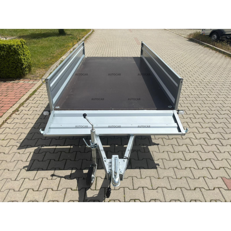 remorcă pliabilă singură axă defrânată , cu prelată înaltă de 140 cm de la podeaua remorcii și un cadru sudat robust (8 cm), cu 4 ranforsări transversale care asigură stabilitate și durabilitate. Suprafața de încărcare de 3040 × 1540 mm, cu pereți laterali de 390 mm (grosime de 1 mm), oferă mult spațiu. Podeaua din placaj impermeabil cu inele de fixare permite fixarea sigură a încărcăturii. Remorca are o structură pliabilă pe bara de tractare (9 cm) pentru încărcare ușoară, o deschidere frontală și roată de sprijin inclusă. Un ajutor fiabil și practic pentru transportul diverselor încărcături.