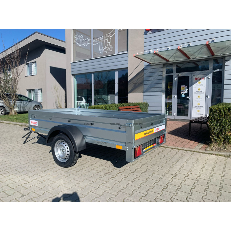 Remorcă cu o singură axă, defrânată , cu laterale suprastructură, prelată plată, roată de sprijin, construcție cu cadru complet de 6 cm înălțime și cu trei ranforsări transversale, asigură o rezistență și o stabilitate ridicate chiar și la încărcare completă. Patru ochiuri de ancorare sunt amplasate în podea pentru a fixa în siguranță sarcina. Remorca este echipată cu laterale profilate rezistente din tablă galvanizată, ceea ce garantează o durată lungă de viață și protecție împotriva coroziunii.