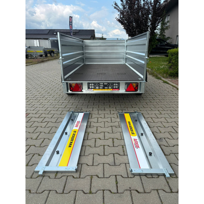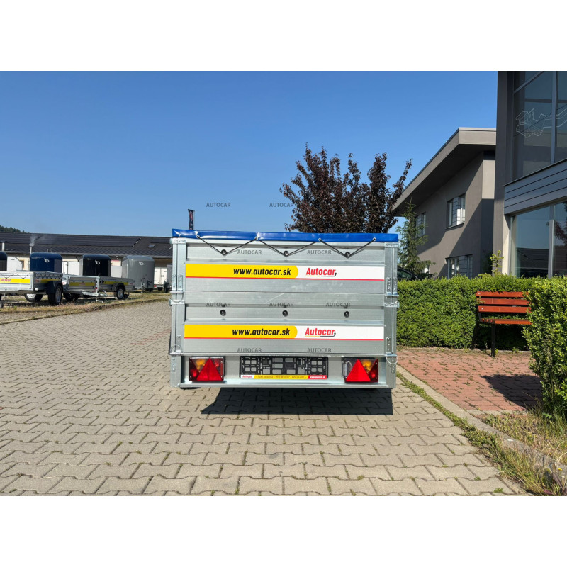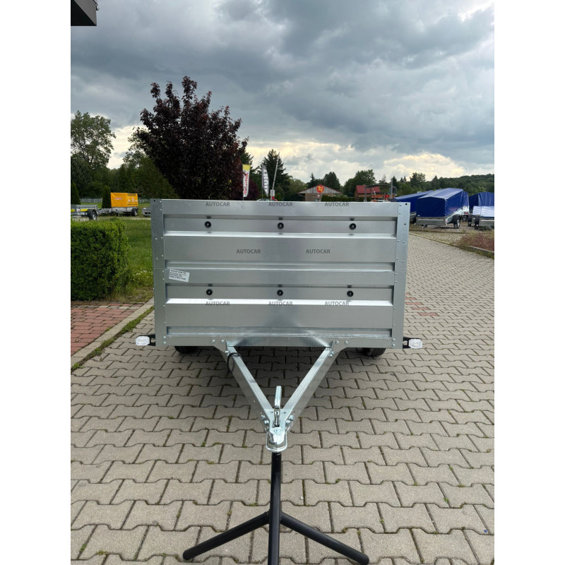 Remorcă cu o singură axă, defrânată , cu laterale suprastructură, prelată plată, roată de sprijin, construcție cu cadru complet de 6 cm înălțime și cu trei ranforsări transversale, asigură o rezistență și o stabilitate ridicate chiar și la încărcare completă. Patru ochiuri de ancorare sunt amplasate în podea pentru a fixa în siguranță sarcina. Remorca este echipată cu laterale profilate rezistente din tablă galvanizată, ceea ce garantează o durată lungă de viață și protecție împotriva coroziunii.