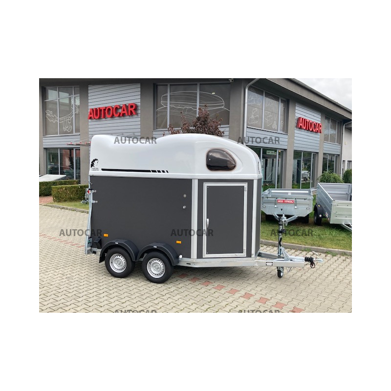 Această remorcă este ideală pentru transportul sigur și confortabil a doi cai. Construcția remorcii este echipată cu axe puternice de la producătorul german KNOTT, ceea ce garantează fiabilitatea și siguranța în timpul transportului. Acoperișul remorcii este fabricat din laminat cu o grosime de 8 mm dintr-o singură bucată, oferind protecție adecvată împotriva condițiilor meteorologice. Pereții remorcii au o grosime de 18 mm, iar podeaua 21 mm, fiind fabricate din placaj, asigurând astfel rezistența. Dimensiunile și construcția generale ale remorcii asigură un transport confortabil și sigur al cailor chiar și la viteze mai mari și promovează o bună aerodinamică a vehiculului. Această remorcă este alegerea ideală pentru proprietarii de cai care caută o modalitate fiabilă și de înaltă calitate pentru transportul animalelor lor.