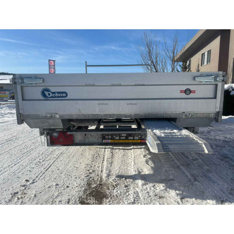 Remorcă cu frâne, pliabilă hidraulic pe trei laturi două axe și roți depozitate sub zona de încărcare, de la compania franceză Debon Cheval Liberté. În mod standard, este echipată cu panouri laterale din aluminiu care pot fi demontate și astfel poate fi transformată într-o remorcă platformă și rampe din aluminiu cu o capacitate portantă de 3 tone (2x 1,5t) cu o lungime de 2,5 m, lățime a rampei de 300 mm și poate fi utilizată până la o înălțime de 760 mm. Structura este formată dintr-o structură robustă din oțel sudat galvanizat la cald , care garantează durabilitate pe termen lung. Echipamentul de bază include: pliere hidraulică electrică , o podea din placaj impermeabil acoperit cu tablă galvanizată , o roată de susținere, pene de fundație, 8 console de ancorare. Remorca are o garanție de 2 ani și este proiectată pentru o viteză de 140 km/h.
