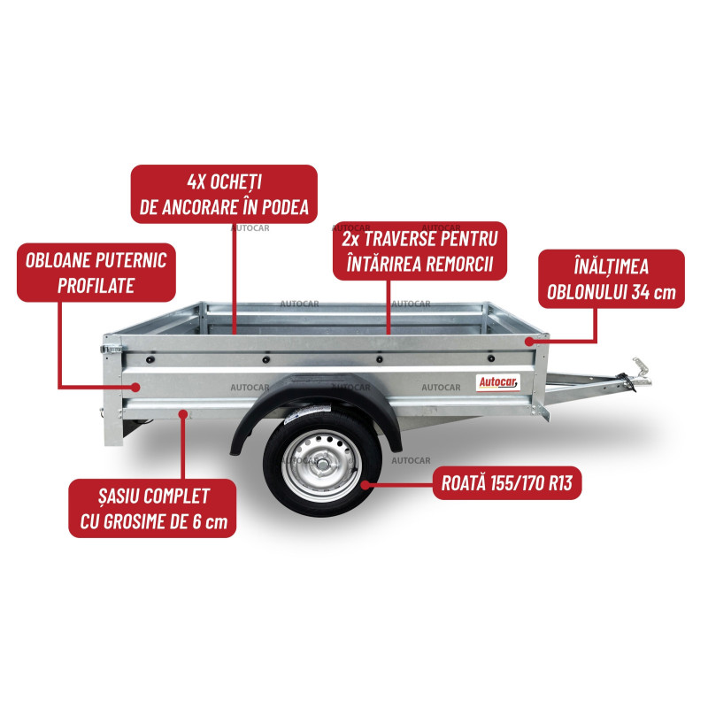 Remorca Autocar A210 fara sistem de franare pe o singura axa de 750 kg