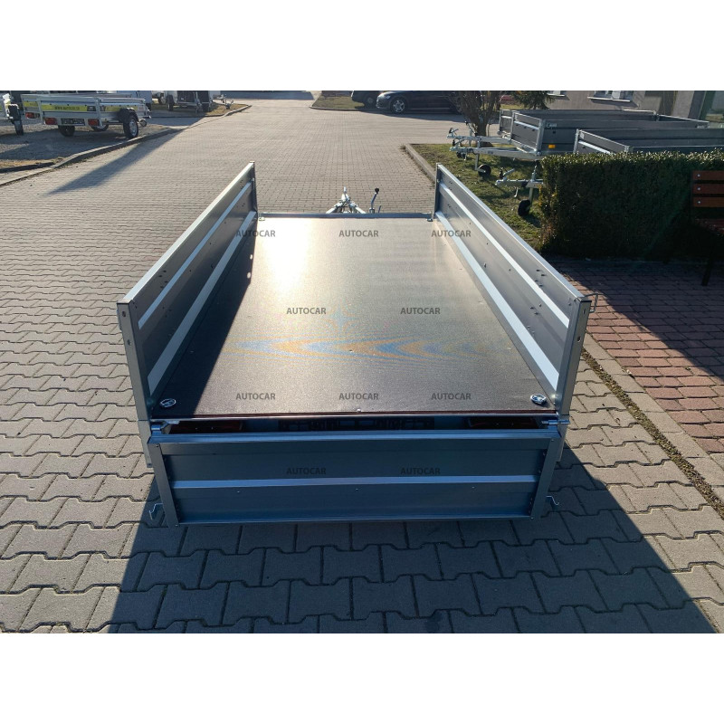 O remorcă pliabilă singură axă defrânată , cu un cadru sudat robust (8 cm) și ranforsare transversală asigură stabilitate și durabilitate. Zona de încărcare de 2630 × 1330 mm, cu pereți laterali de 390 mm (grosime de 1 mm), oferă mult spațiu. Podeaua din placaj impermeabil cu inele de fixare permite fixarea sigură a încărcăturii. Căruciorul are o structură pliabilă pe bara de tractare (9 cm) pentru încărcare ușoară, o deschidere frontală frontală și roată de sprijin incluse în preț. Un ajutor fiabil și practic pentru transportul diverselor mărfuri.