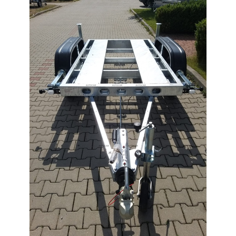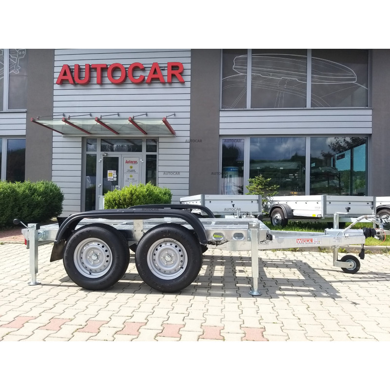 Remorcă cu două axe pentru transportul generatoarelor, compresoarelor, agregatelor, pompelor etc. cu roțile depozitate în lateralul zonei de încărcare. Structura constă într-o construcție robustă din oțel sudat galvanizat la cald, care garantează o durată lungă de viață. In dotarea de baza dispune de: roata de sustinere, pene de blocare, picior de sustinere 4x. Remorca are o garanție de 2 ani și este proiectată pentru o viteză de 130 km/h.