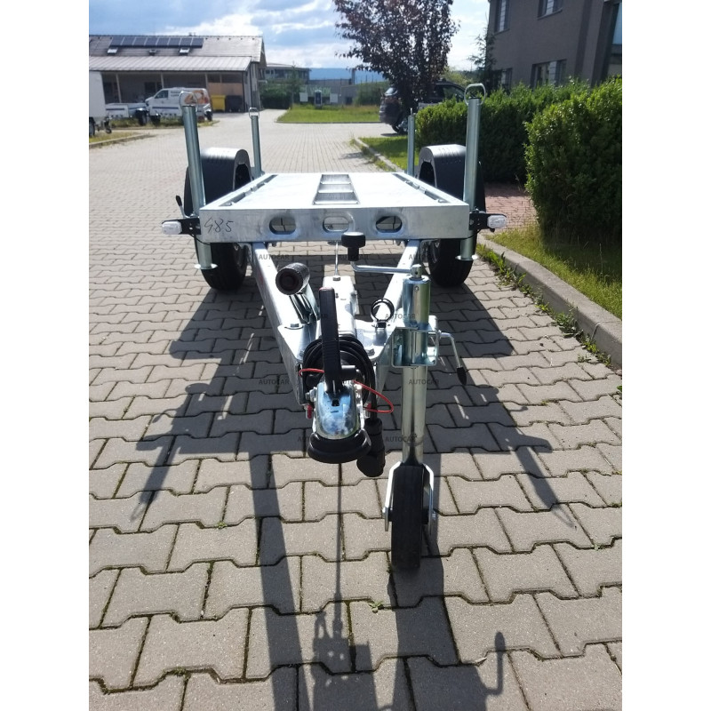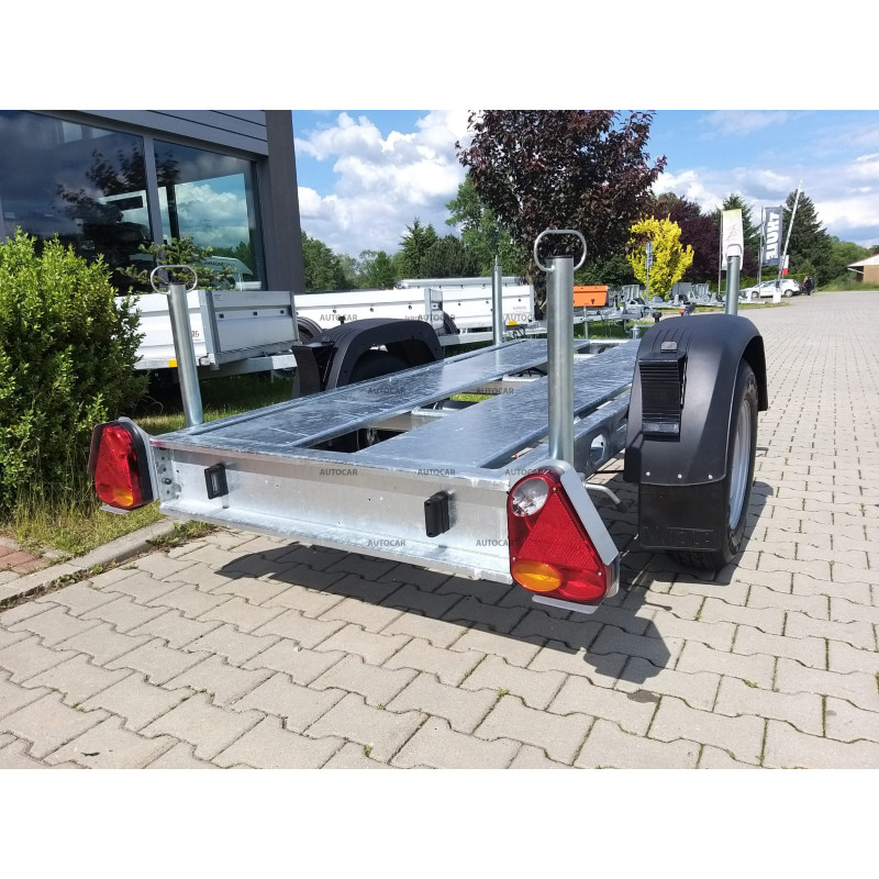 Remorcă cu o singură axă pentru transportul generatoarelor, compresoarelor, agregatelor, pompelor etc. cu roțile depozitate în lateralul zonei de încărcare. Structura constă dintr-o construcție robustă din oțel sudat galvanizat la cald, care garantează o durată lungă de viață. In dotarea de baza dispune de: roata de sprijin, pene de blocare, picior de sprijin 4x. Remorca are o garanție de 2 ani și este proiectată pentru o viteză de 130 km/h.