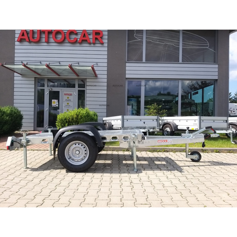 Remorca cu o singură axă pentru transportul centralelor electrice, compresoarelor, agregatelor, pompelor etc. cu roțile depozitate lângă zona de încărcare. Structura constă dintr-o structură robustă din oțel sudat galvanizat la cald, care garantează o durată lungă de viață. In dotarea de baza dispune de: roata de sustinere, pene de fundatie, picior de sustinere 4x . Remorca are o garanție de 2 ani și este proiectată pentru o viteză de 130 km/h.