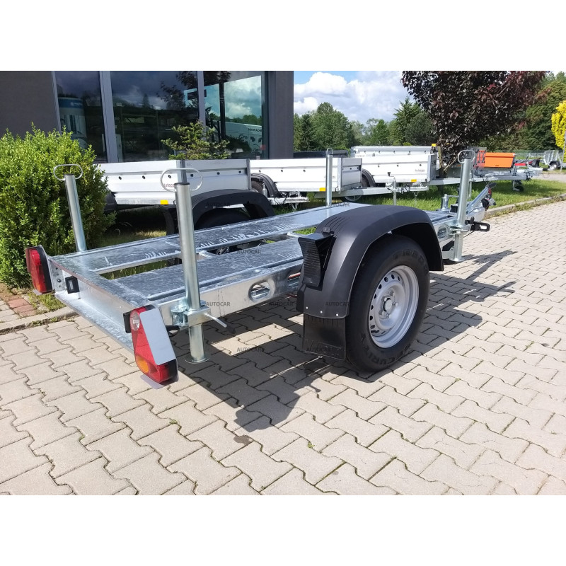Remorca cu o singură axă pentru transportul centralelor electrice, compresoarelor, agregatelor, pompelor etc. cu roțile depozitate lângă zona de încărcare. Structura constă dintr-o structură robustă din oțel sudat galvanizat la cald, care garantează o durată lungă de viață. In dotarea de baza dispune de: roata de sustinere, pene de fundatie, picior de sustinere 4x. Remorca are o garanție de 2 ani și este proiectată pentru o viteză de 130 km/h.„