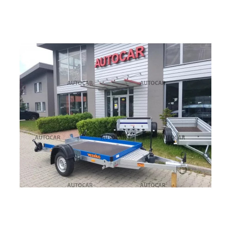 Remorcă basculabilă pentru transportul ATV-urilor, mini-tractoarelor sau altor mecanisme pe roți. Remorca este basculabilă pe ax cu ajutorul unui sistem hidraulic. Podeaua este fabricată din placaj rezistent la apă. Cadru remorcii este din oțel galvanizat la cald. Echipamentul standard include: roată de sprijin, bară de protecție, 4x ocheți de ancorare. Remorca are o garanție de 2 ani și este proiectată pentru o viteză de 100 km/h.