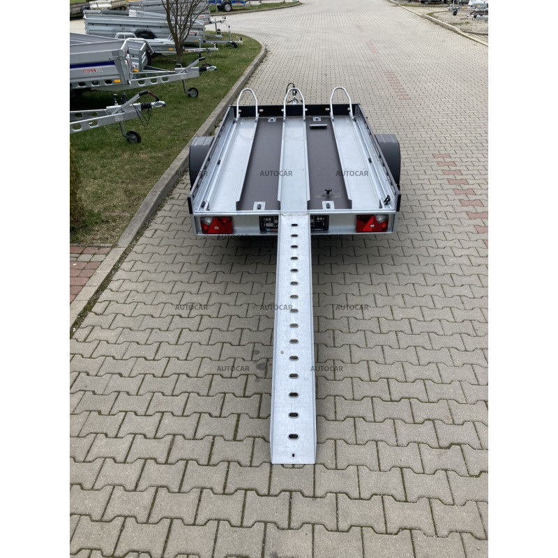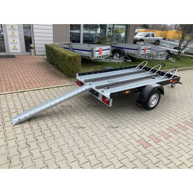 Remorca pentru motociclete Motomax cu o singură axă, nemotorizată, este un transportator de motociclete pentru trei motociclete, potrivit pentru cele mai multe tipuri de motociclete. Remorca este echipată cu mai multe puncte de ancorare pentru fixarea sigură a motocicletei. Motocicletele sunt încărcate cu ajutorul unei rampe de încărcare, care face parte din remorcă. Cadru robust al remorcii este sudat și galvanizat, ceea ce garantează o durată lungă de viață. Suprafața de încărcare este fabricată din placaj antiderapant și rezistent la apă. Dimensiunile sale permit transportul a până la trei motociclete simultan.