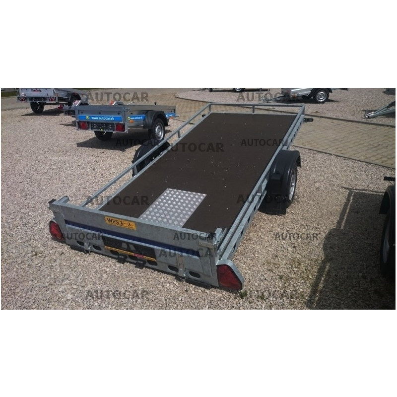 Remorcă monoax fara sistem de frânare . Este basculabil pe spate prin intermediul unei mecanism cu șuruburi și zona de încărcare este ajustată pentru urcarea și prinderea ușoară a marfii. Construcţia este robustă din oţel galvanizat, care garantează o viata de lungă durată. Remorca este întârită cu balustradă care este din cadru sudat care ține loc obloanelor. Remorca are o garanţie de 3 ani şi este construită pentru o viteză de 100 km/h.