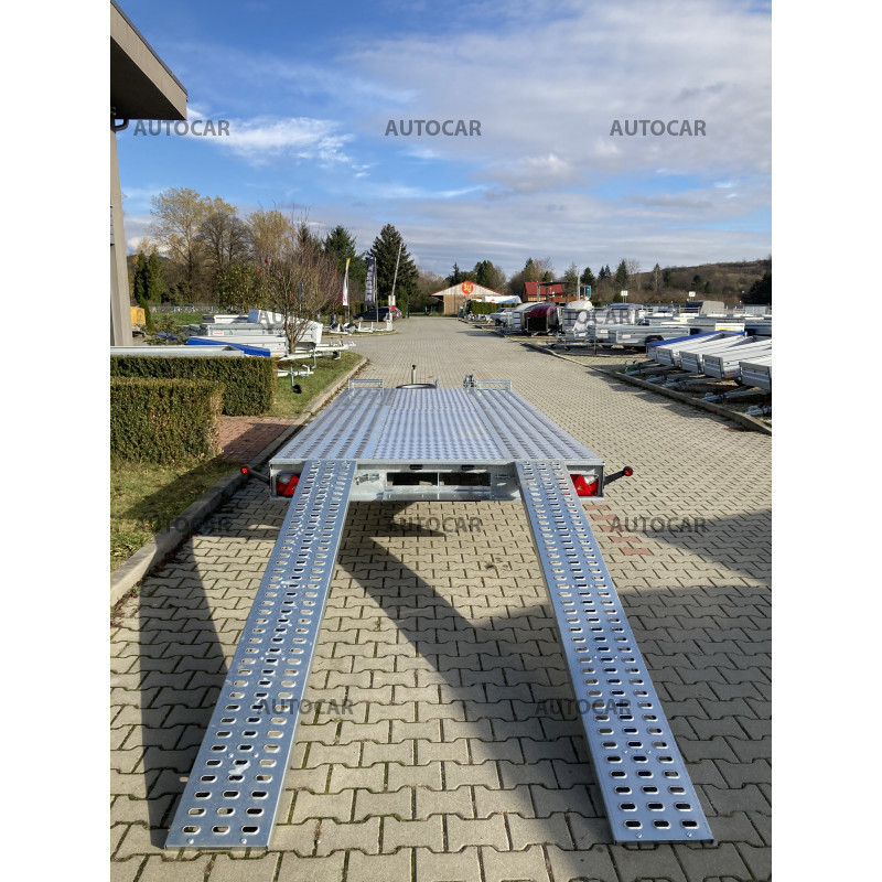 Remorcă cu sistem de frânare cu direcție pentru transportul automobilelor cu roțile plasate sub suprafața de încărcare. Construcția constă într-o structură robustă din oțel sudat galvanizat, care asigură o durată lungă de viață. Remorca este proiectată pentru o viteză de 140 km/h. Echiparea standard a remorcii include o roată de sprijin, cale de blocare, roată de rezervă cu suport, troliu cu cablu și rampe pentru încărcarea automobilelor.