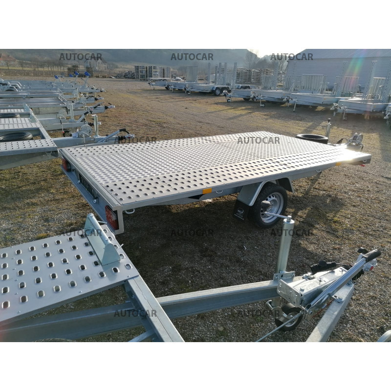 Remorcă cu sistem de frânare si un singur ax pentru transportul automobilelor, cu roțile amplasate în lateral față de suprafața de încărcare. Construcția este formată dintr-o structură robustă din oțel sudat galvanizat termic, asigurând o durată lungă de viață. Remorca este concepută pentru o viteză de 140 km/h. În dotarea standard a remorcii se includ roata de sprijin, calele de blocare, roata de rezervă cu suport, scripete cu cablu și rampe pentru încărcarea automobilului.