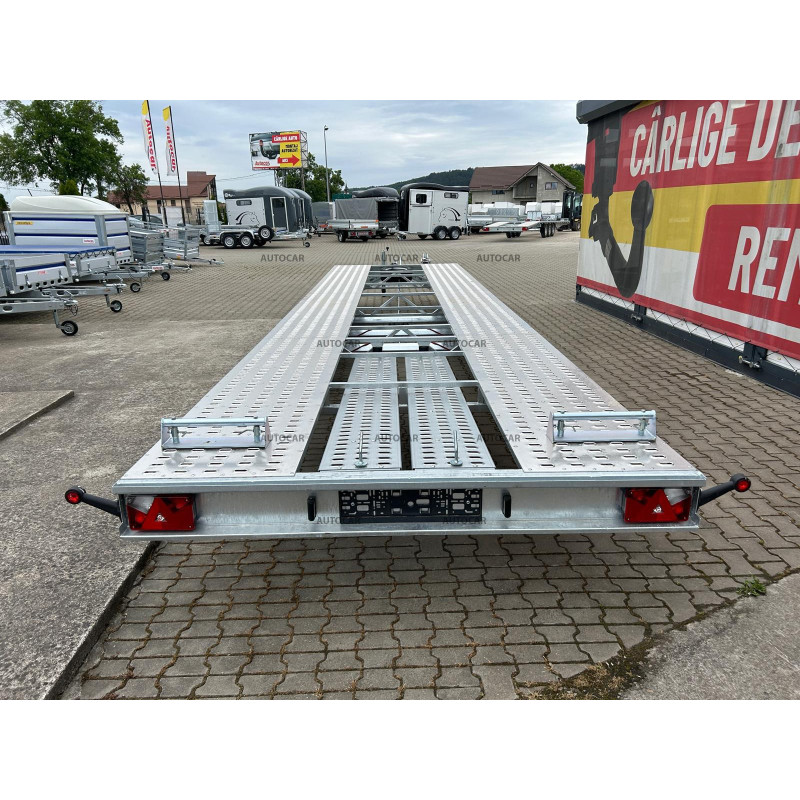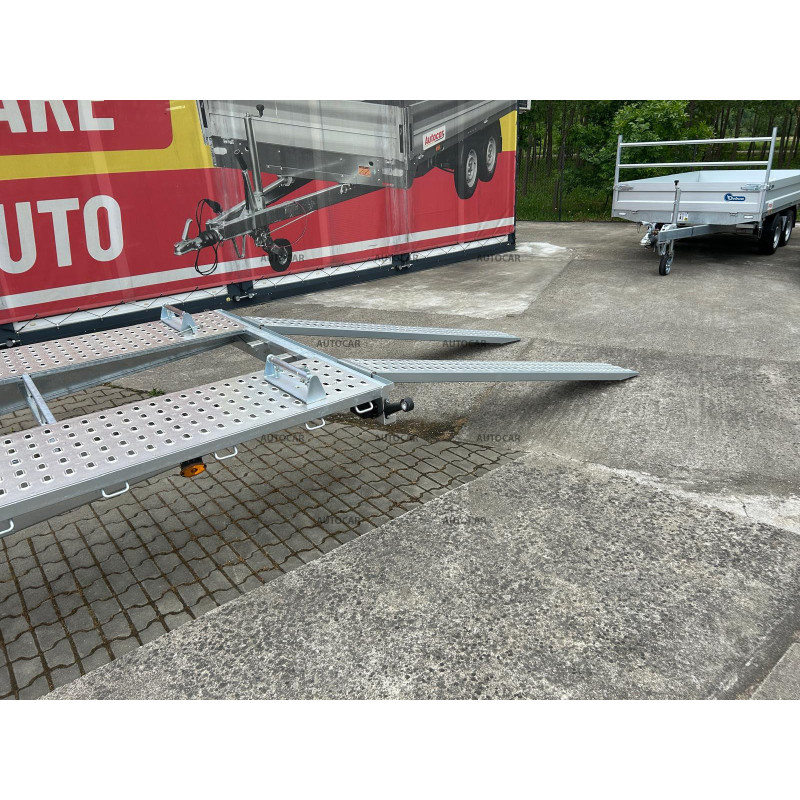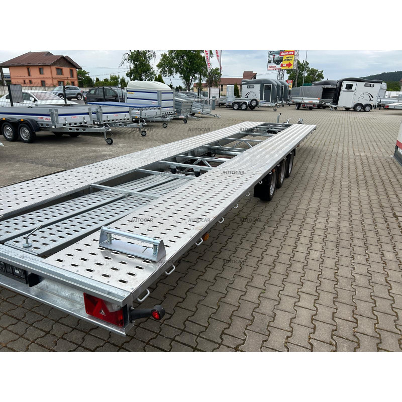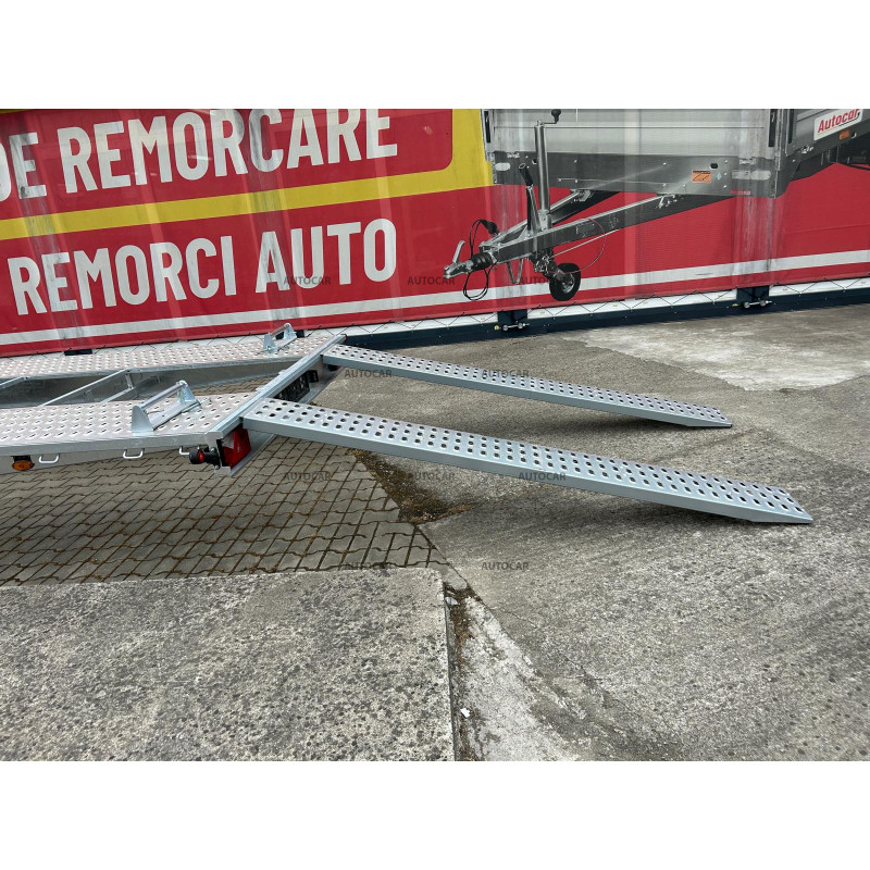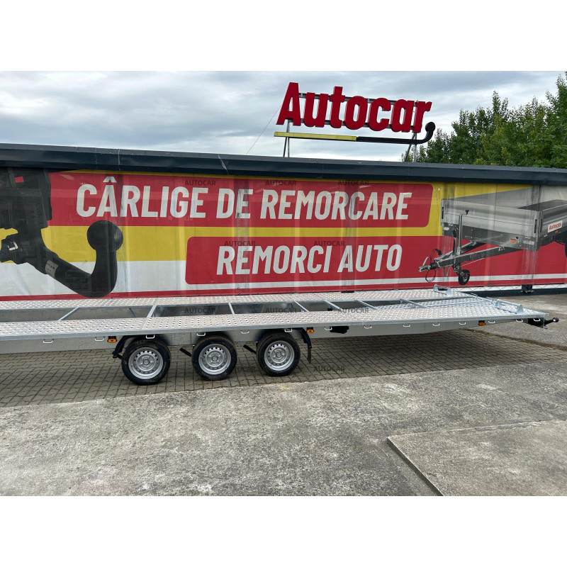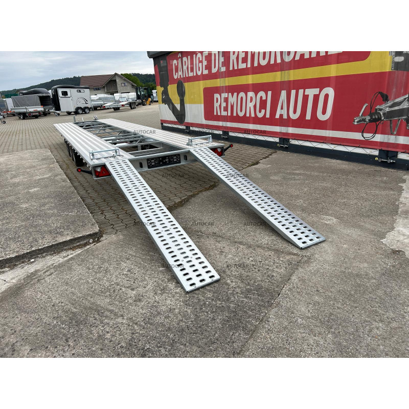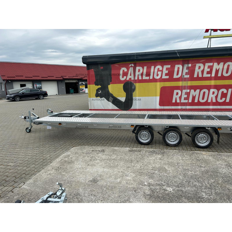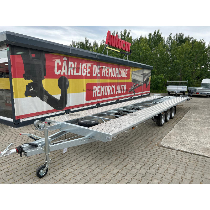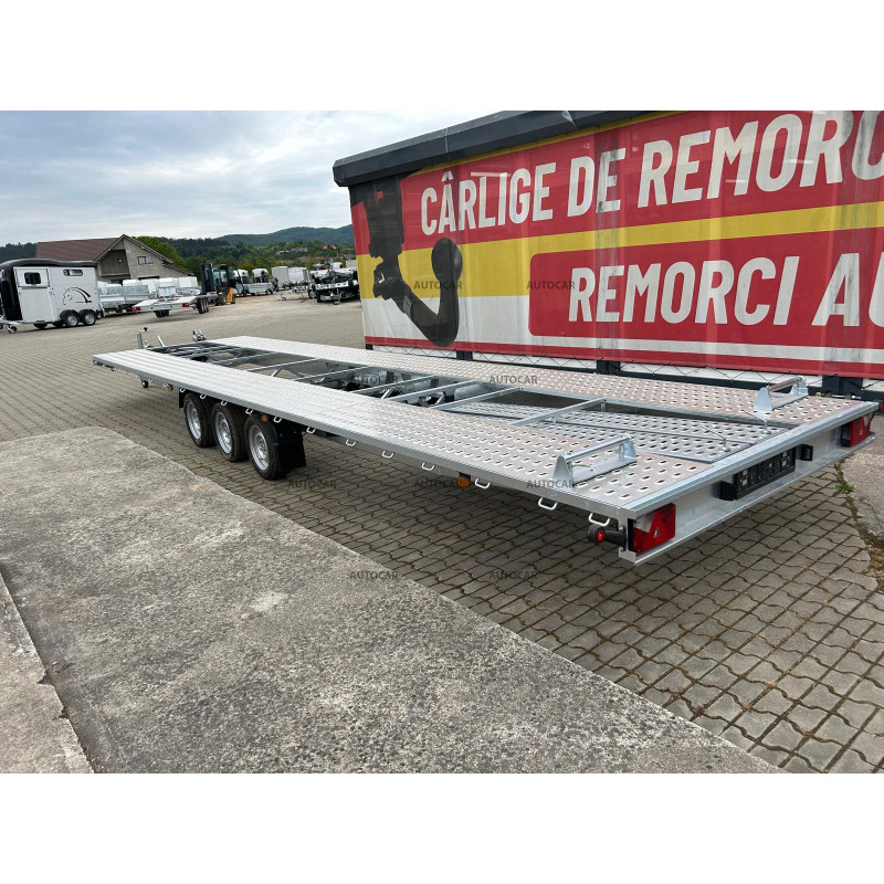 Această remorcă de marfă frânată cu trei axe este proiectată pentru transportul mașinilor și are un design unic, cu roți care sunt depozitate sub pat. Structura sa este realizată din construcție robustă din oțel, care a fost sudată șiulterior, galvanizată la cald, ceea ce asigură o rezistență ridicată la coroziune și o durată de viață lungă. viaţă. Prin calitatea și durabilitatea sa, această remorcă oferă o garanție de 2 ani, ceea ce arată încrederea în fiabilitatea și calitatea sa. Construcția sa a fost concepută pentru a permite transportul mașinilor cu viteze de până la 100 km/h, oferind astfel un transport eficient și sigur.