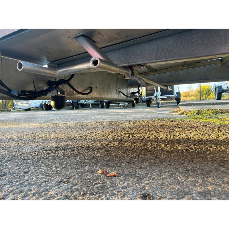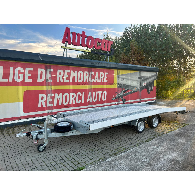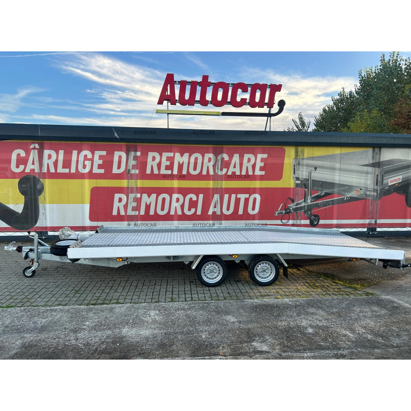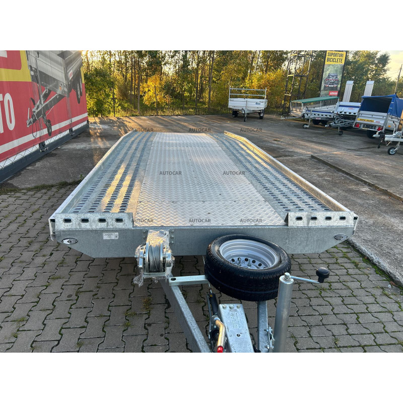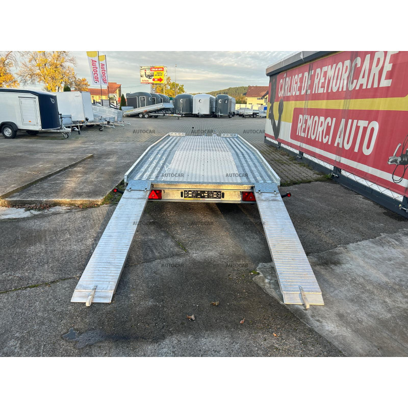 Această remorcă de marfă frânată cu doua axe este proiectată pentru transportul mașinilor și are un design unic, cu roți care sunt depozitate sub platforma . Structura sa este realizată din construcție robustă din oțel, care a fost sudată , galvanizată la cald, ceea ce asigură o rezistență ridicată la coroziune și o durată de viață lungă. . Prin calitatea și durabilitatea sa, această remorcă oferă o garanție de 2 ani, ceea ce arată încrederea în fiabilitatea și calitatea sa. Construcția sa a fost concepută pentru a permite transportul mașinilor cu viteze de până la 140 km/h, oferind astfel un transport eficient și sigur.